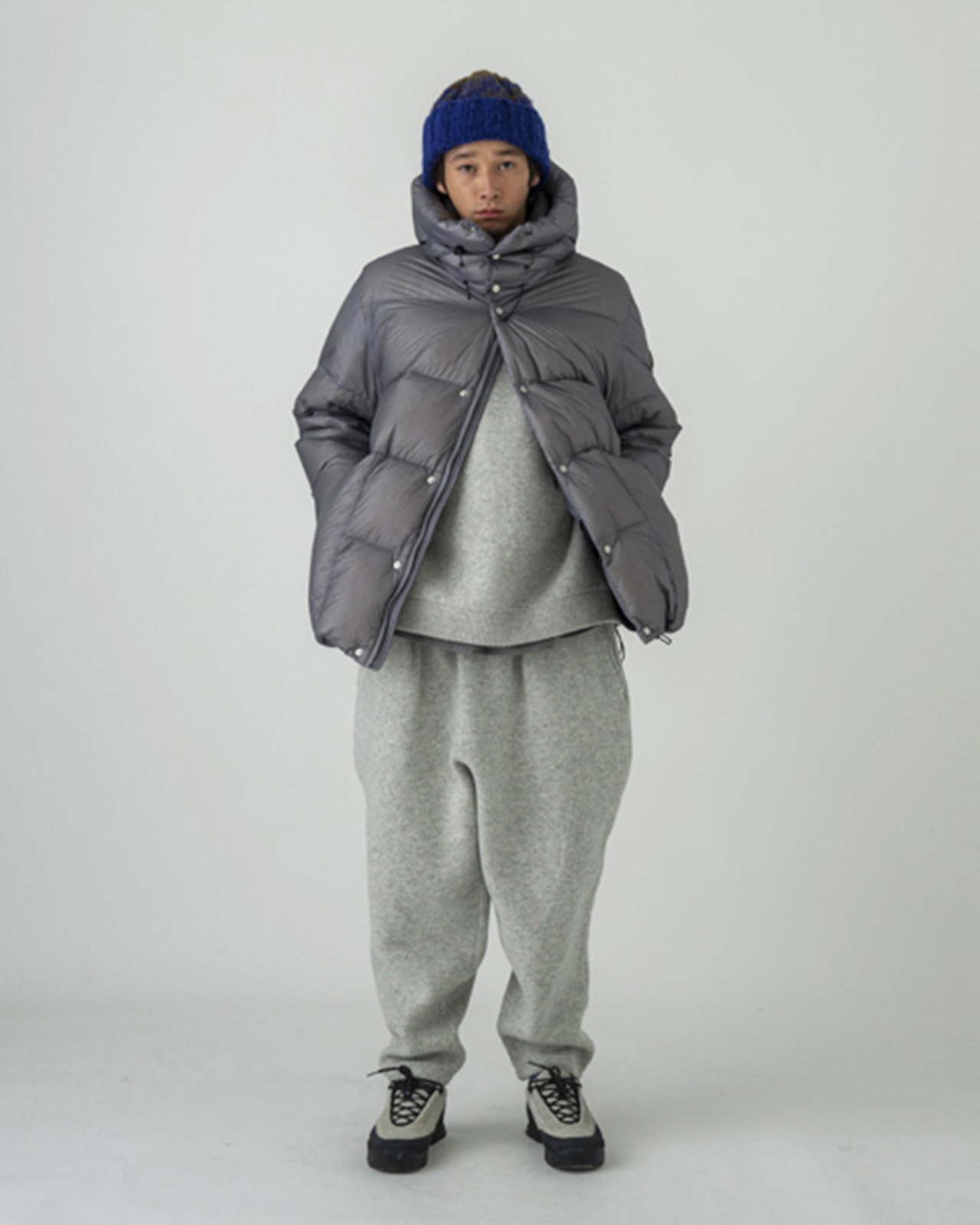 折り返しを深めにとったリブが顔まわりをすっきり見せ、ざっくりとした風合いが、冬の装いに抜け感のある表情を添えてくれます。