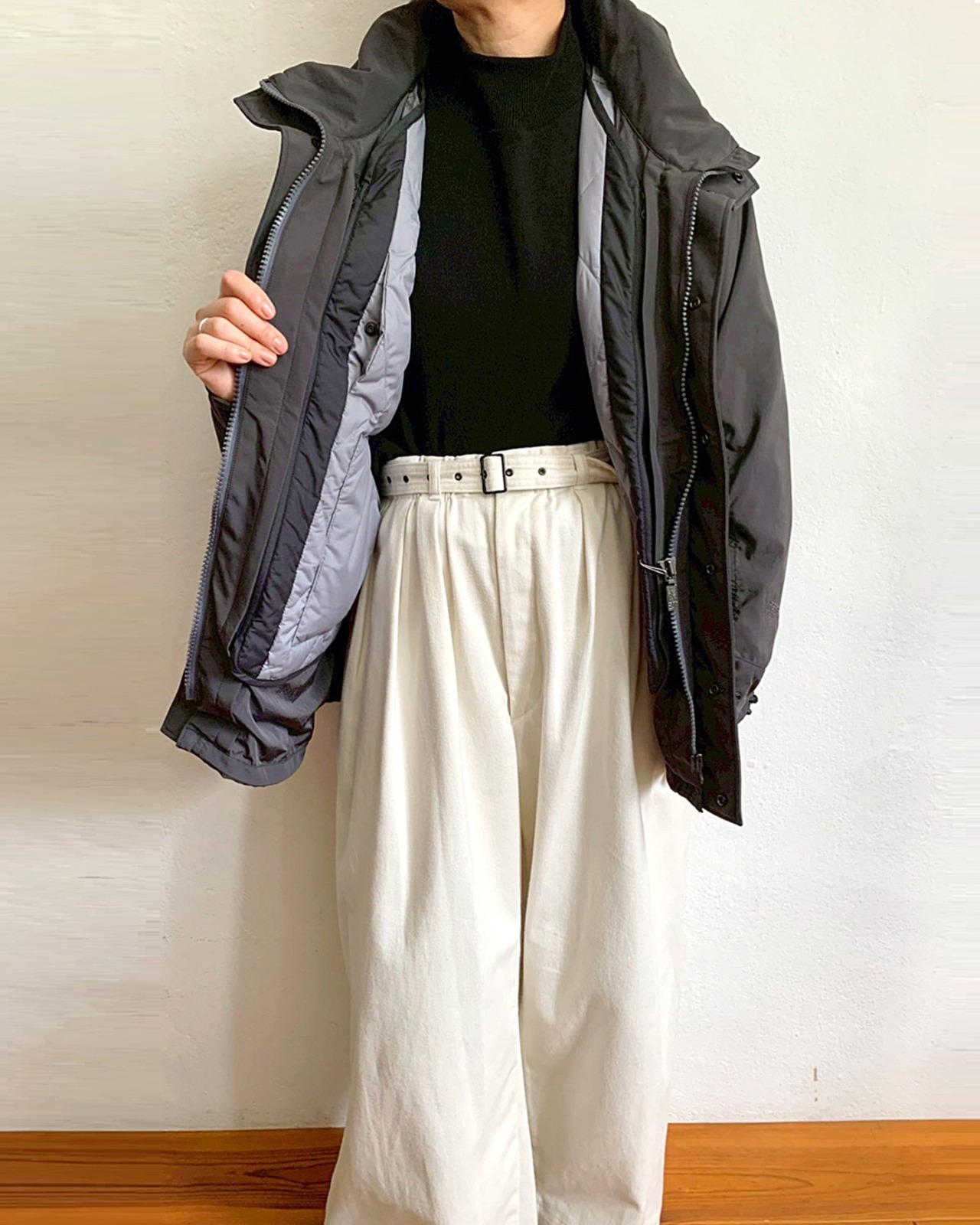 ミニマルでスマートなシルエットは、アウターにもインナーにも活躍。