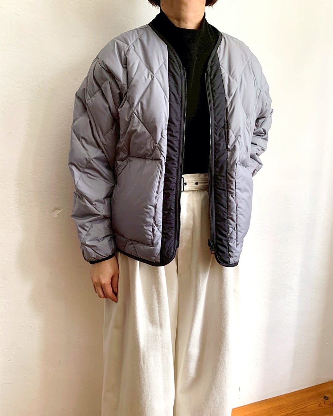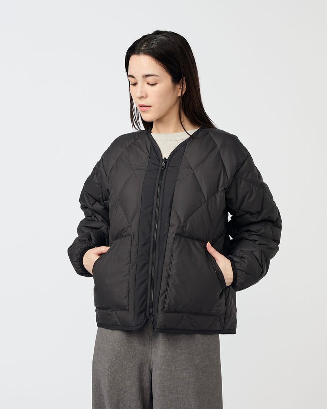 〈PERTEX® QUANTUM〉50デニール・リサイクルポリエステルリップストップを使ったダウンカーディガン。