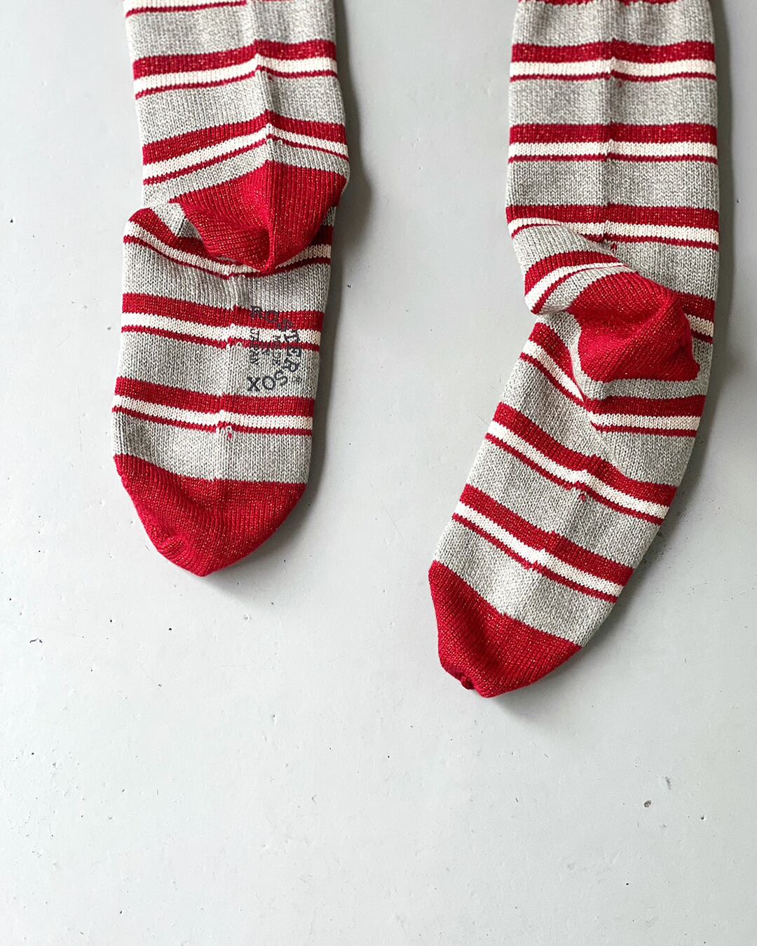複雑な柄を繊細に編み出せる旧式の編み機で、職人の技が光る一足。