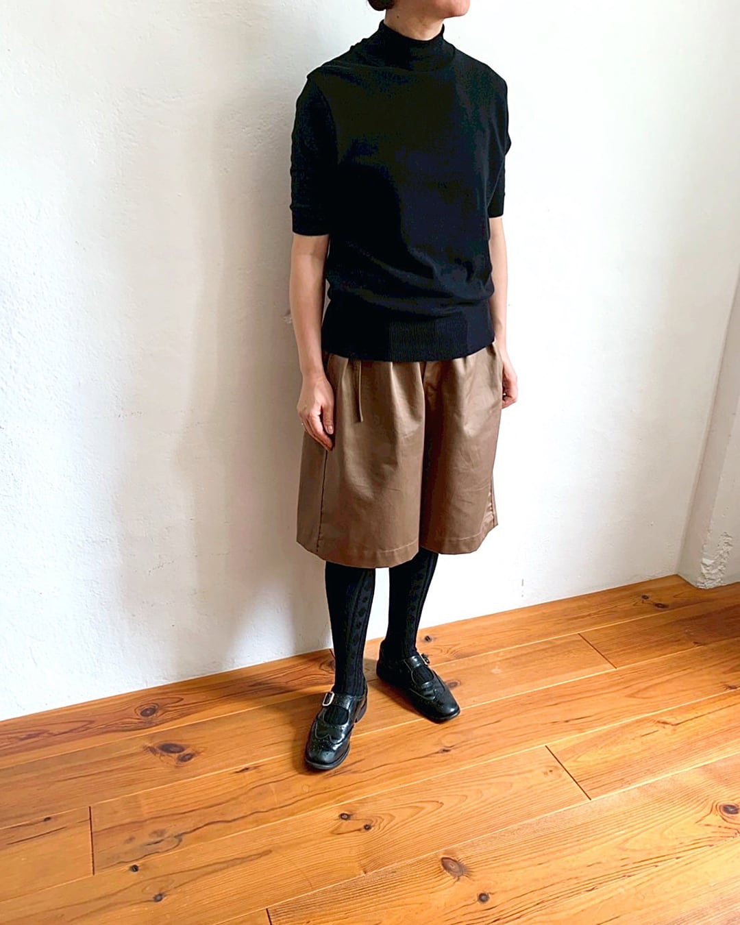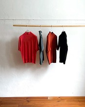 モックネックの5分袖ニットソー,