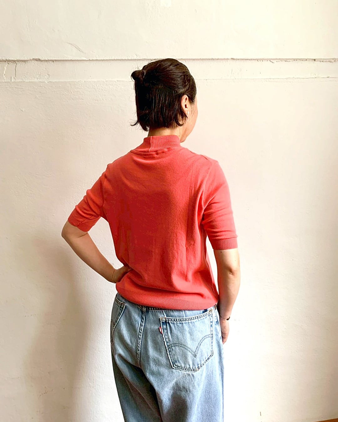 首元は高すぎず、ほどよく詰まったモックネック。