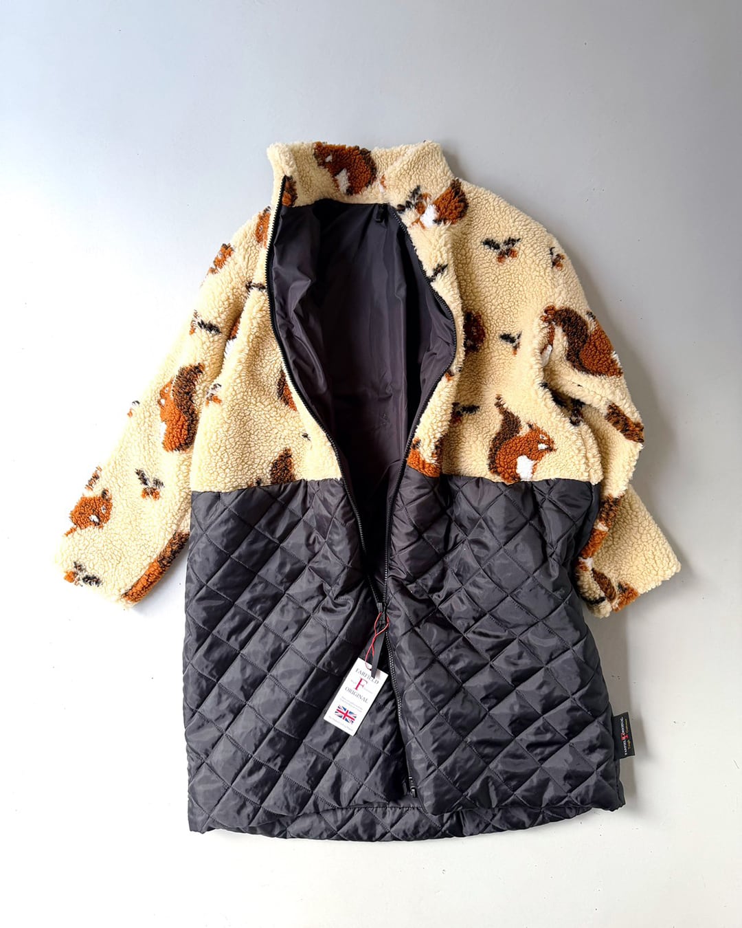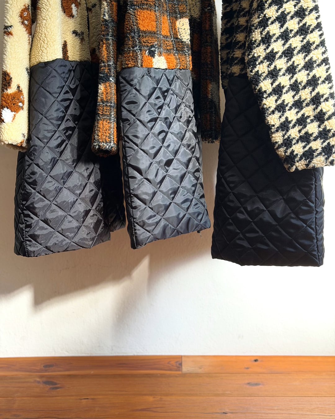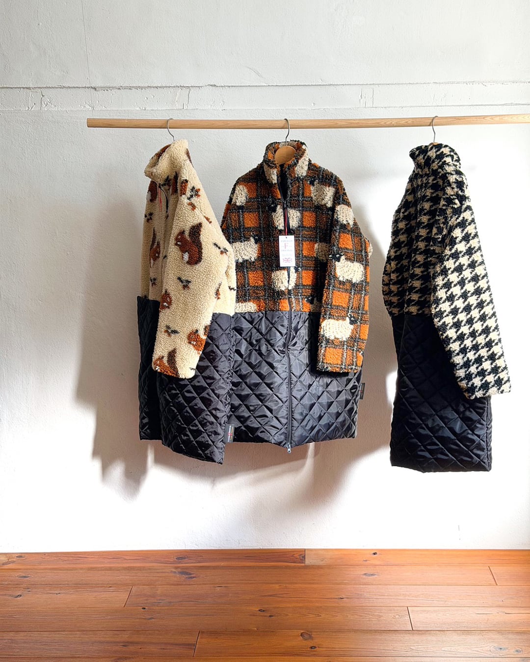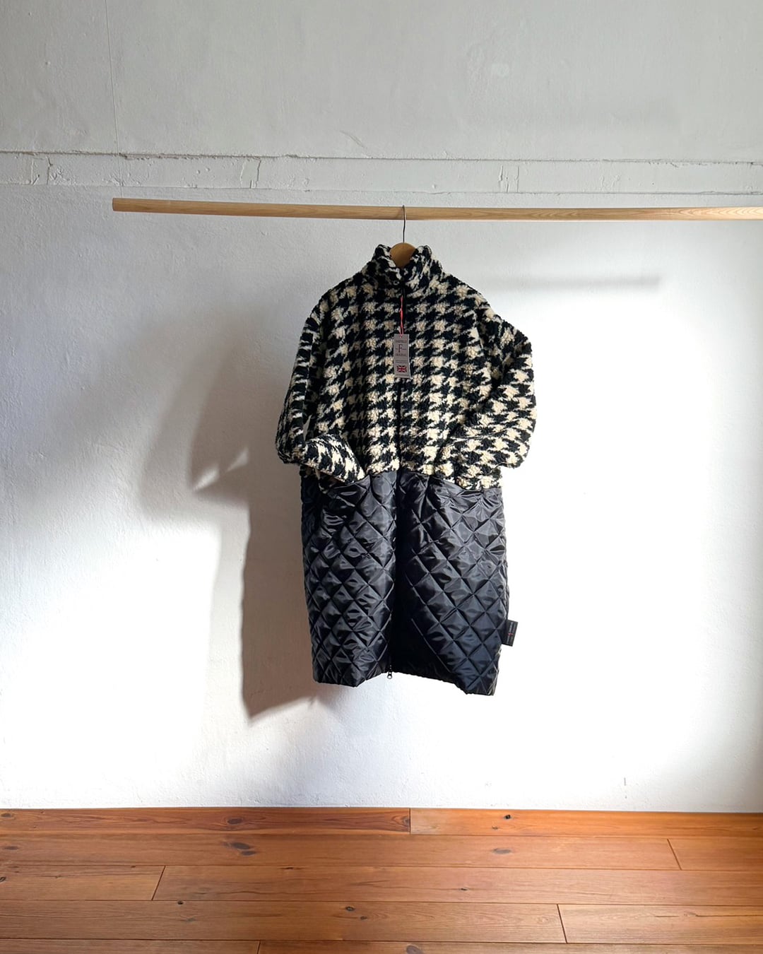 イギリス製ジャカードのボアフリースとキルティングを組み合わせたミディアムコート