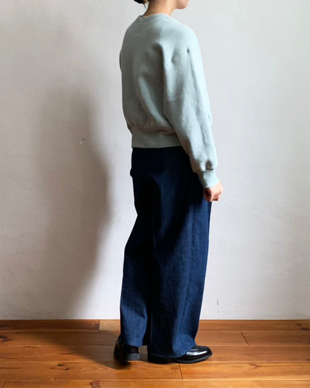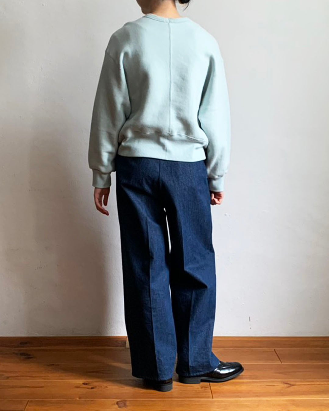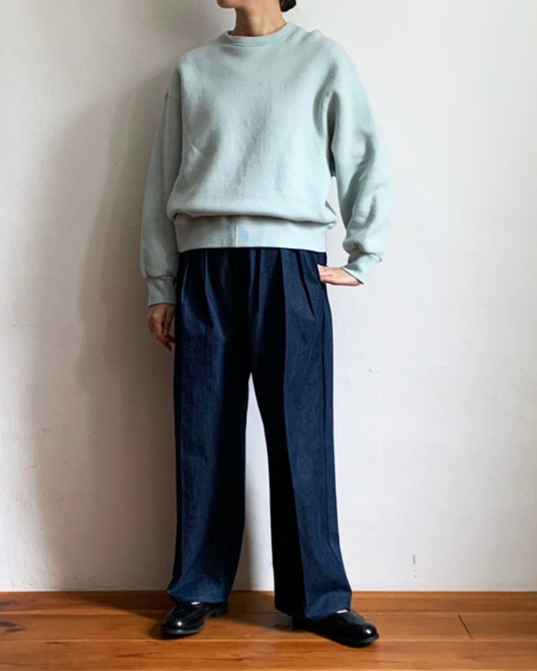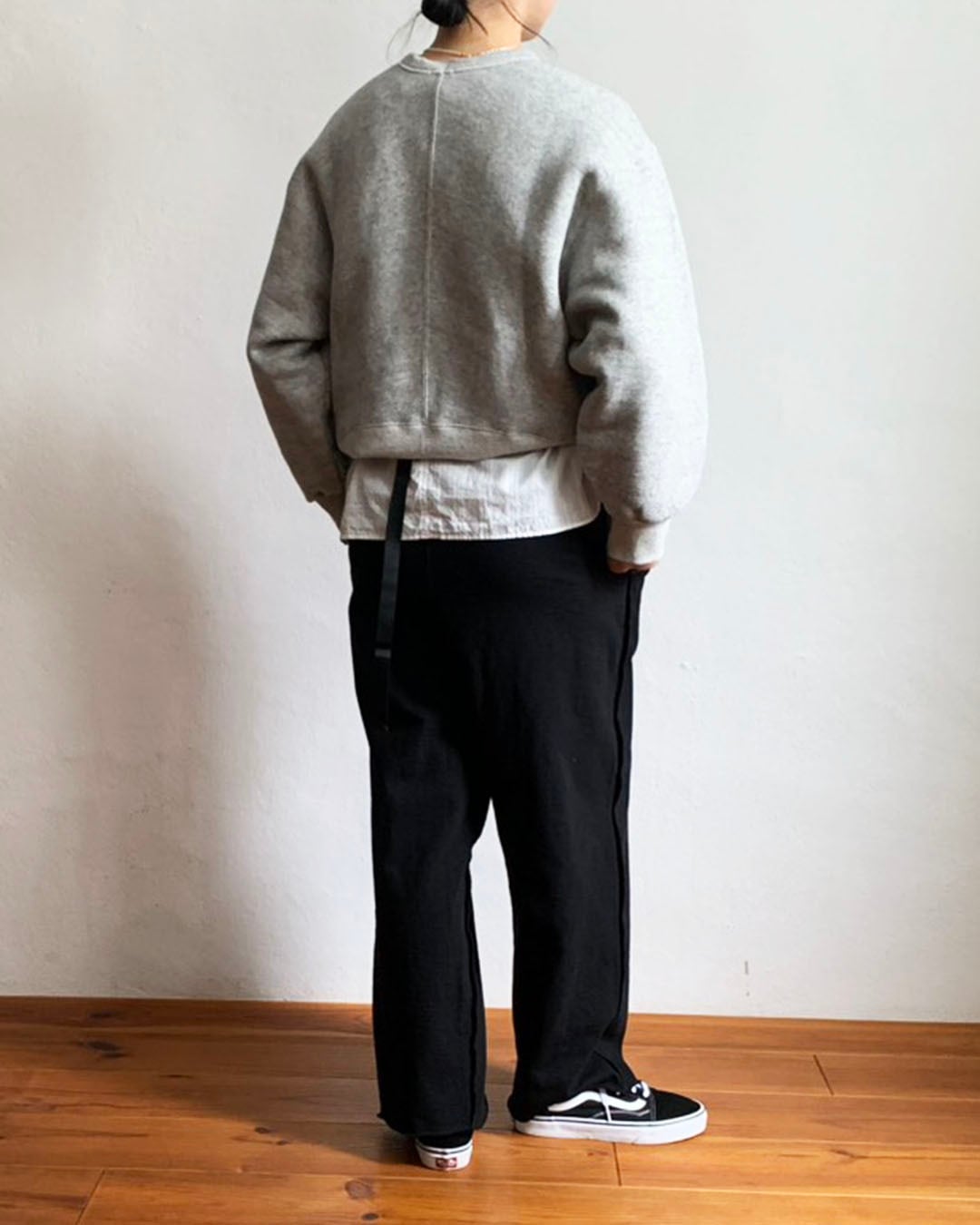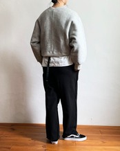 ワイドなシルエットをベースにしながら、着丈は長すぎず、バランスの良いスウェットプルオーバー。
