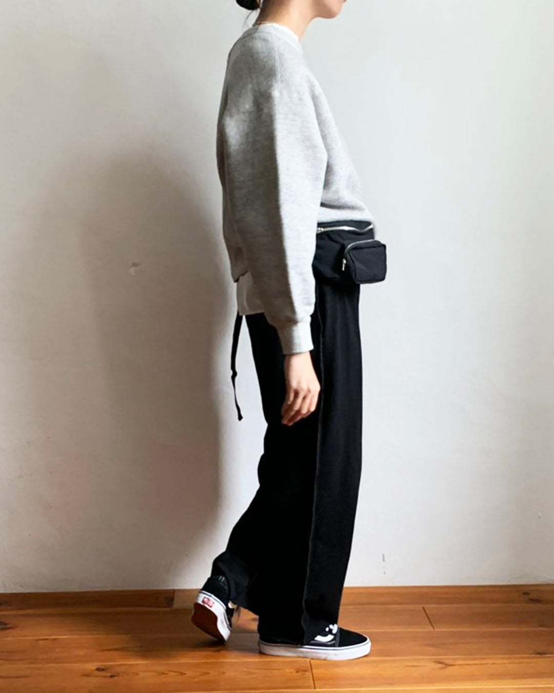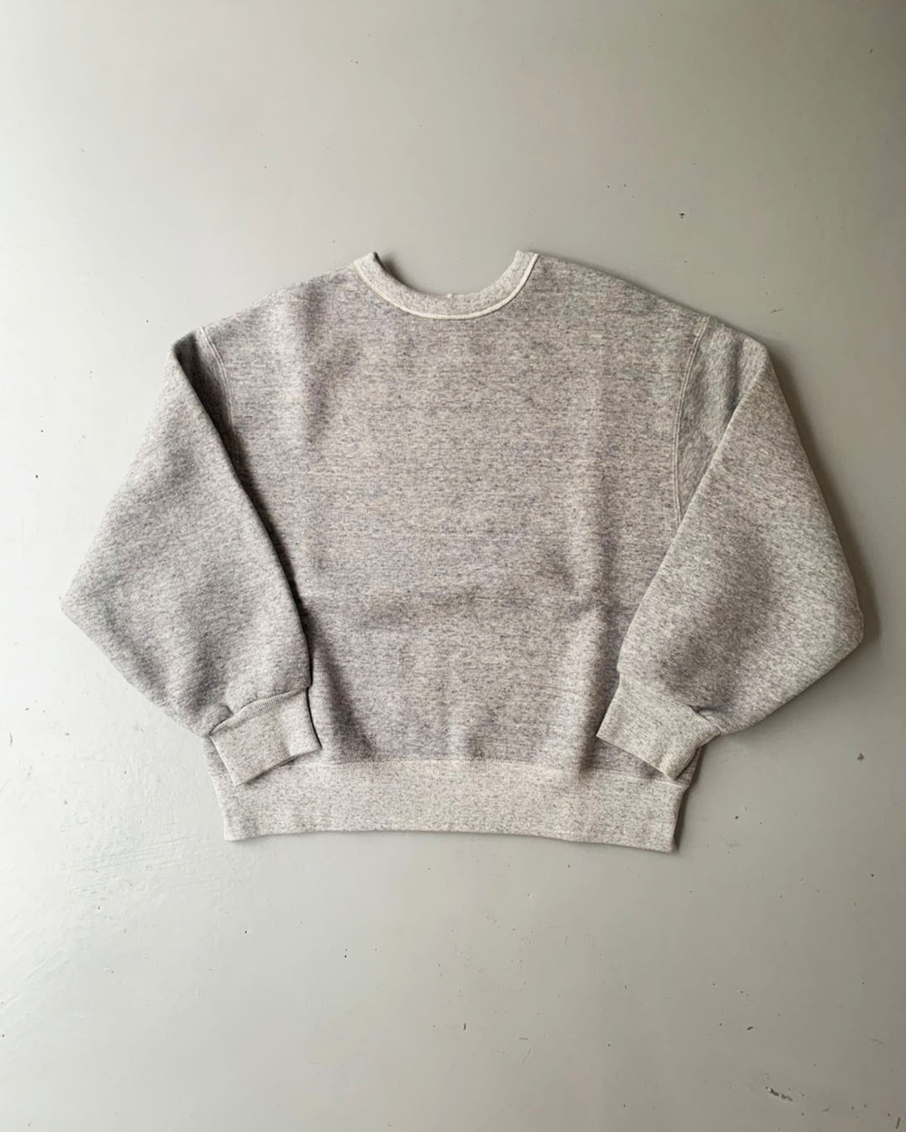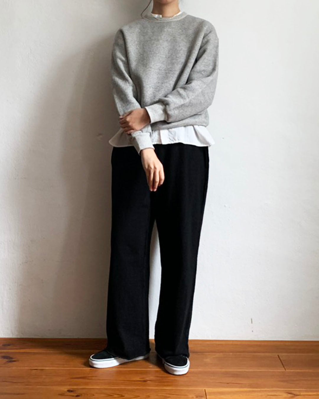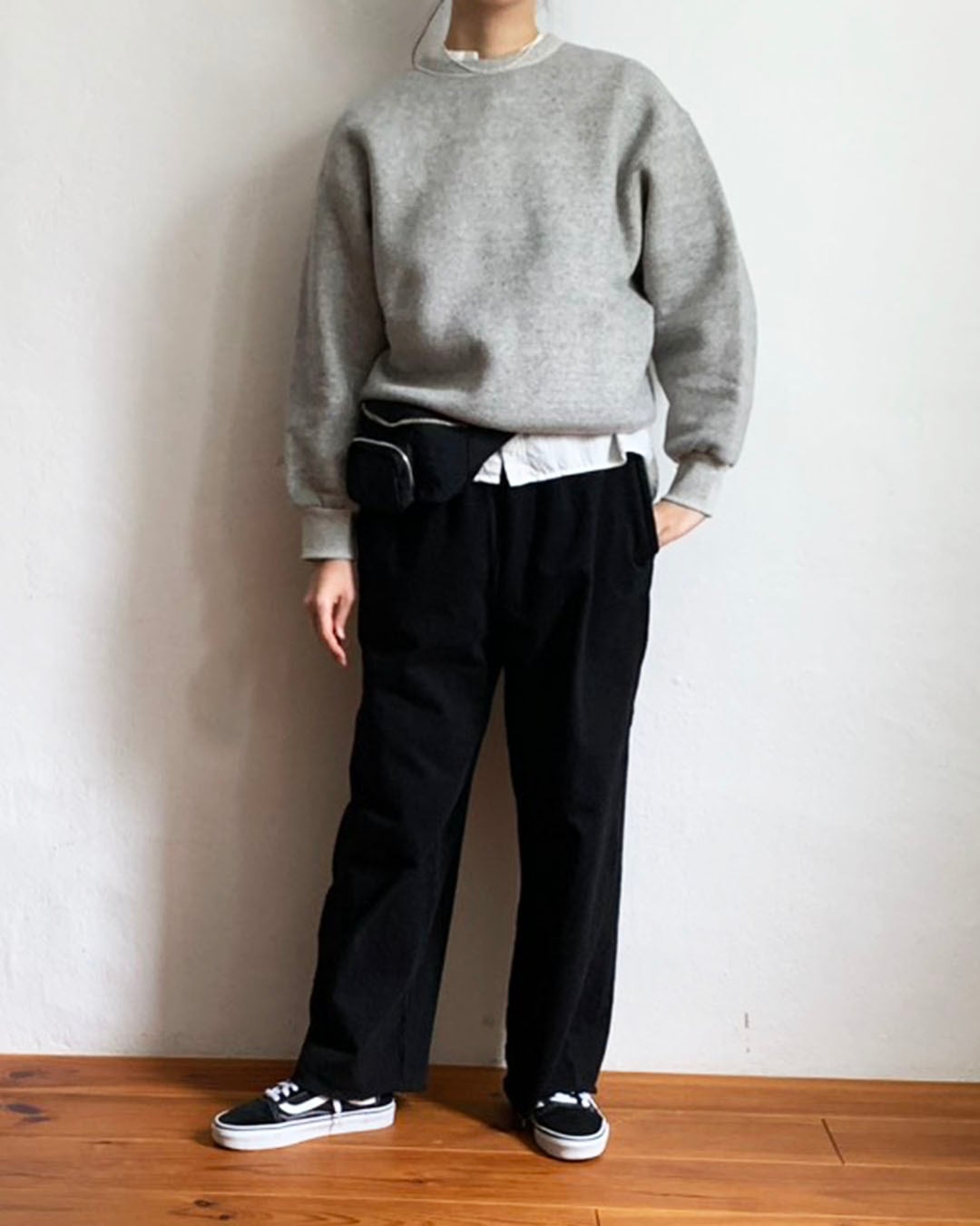 ワイドなシルエットをベースにしながら、着丈は長すぎず、バランスの良いスウェットプルオーバー。