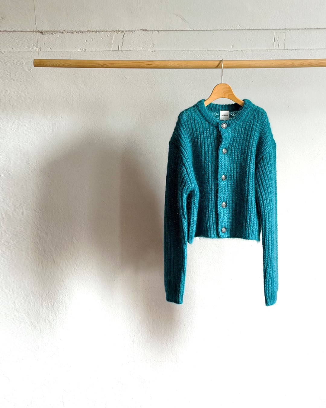 ふんわりとしたモヘアに、3ゲージ特有のボリュームをまとわせたショート丈カーディガン。