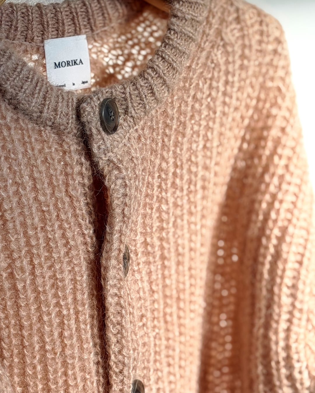 ニットを得意とするデザイナーらしく、片畦編みの軽さが際立ち、空気を包むような柔らかさ。