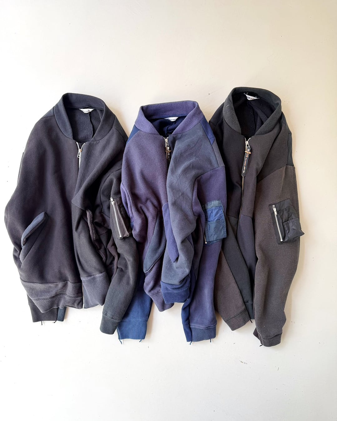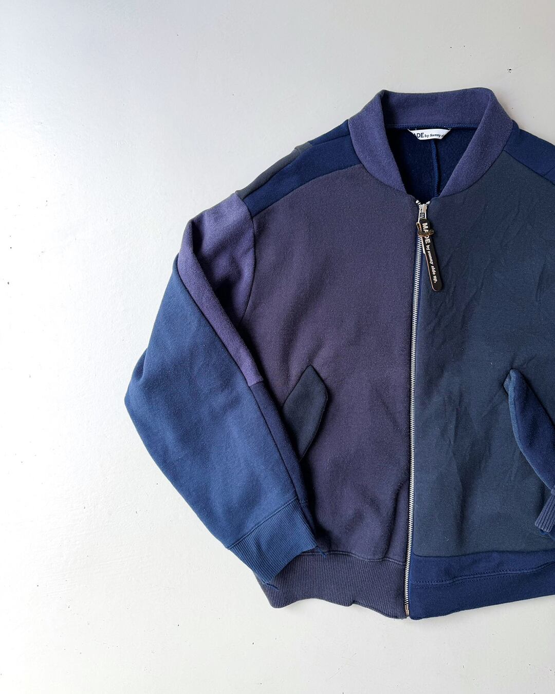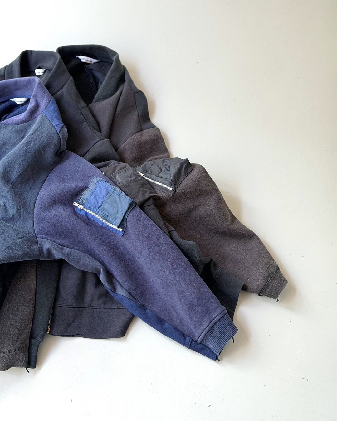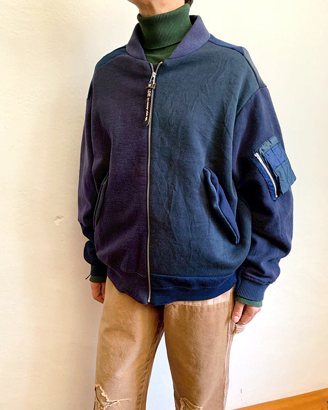 USA古着の同系色オールドスウェットを解体し、ひとつひとつ丁寧に組み上げたリメイクMA-1。