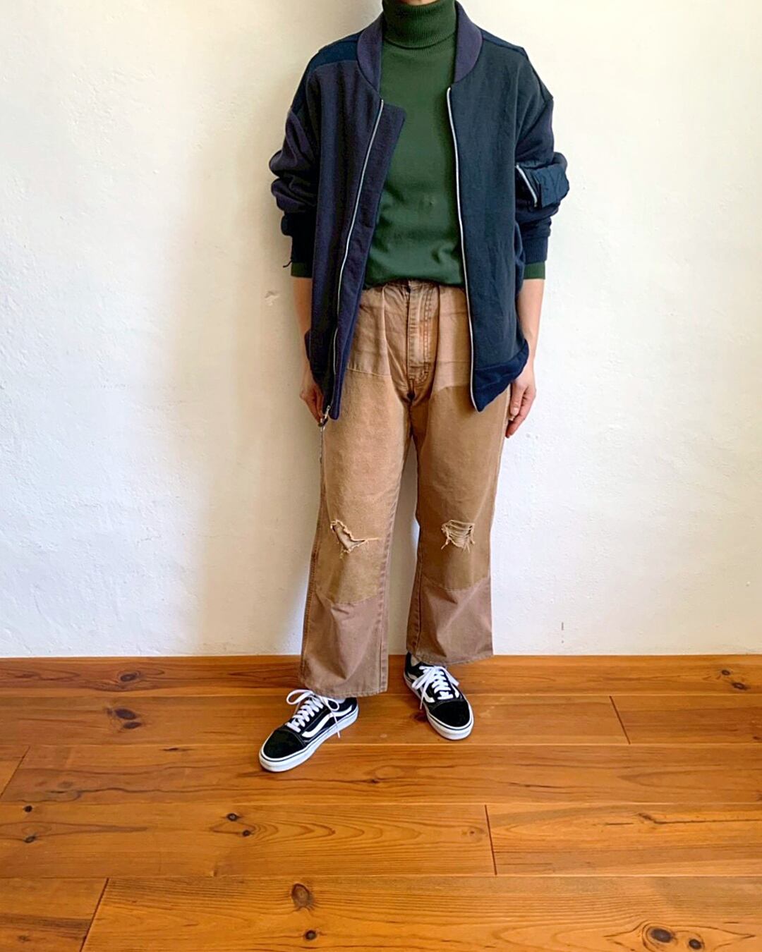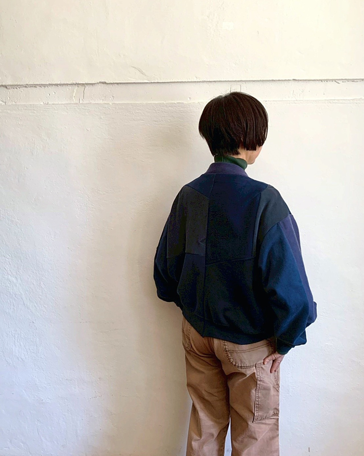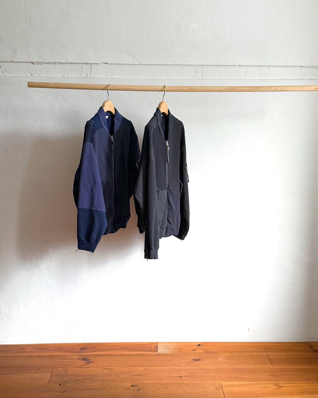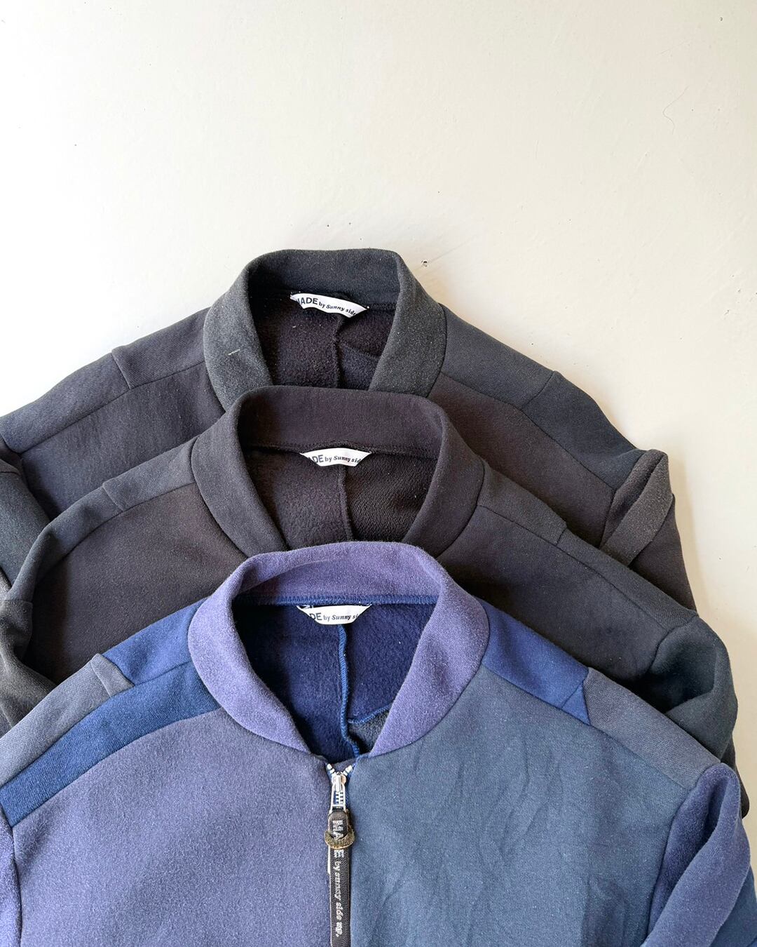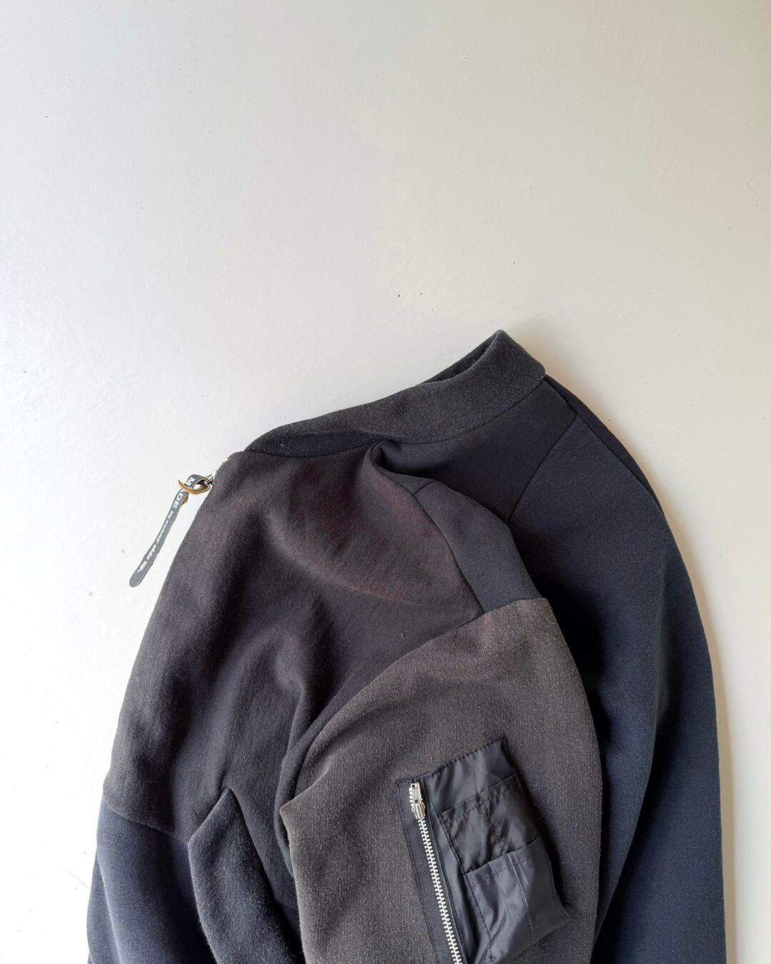 USA古着の同系色オールドスウェットを解体し、ひとつひとつ丁寧に組み上げたリメイクMA-1。