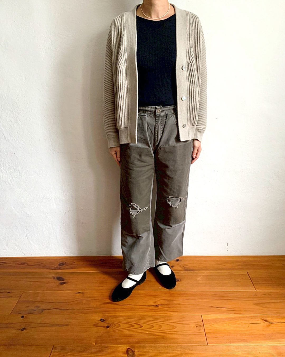 ワイドシルエットながら重心が下がりすぎず、装いを重く見せない仕上がりです。