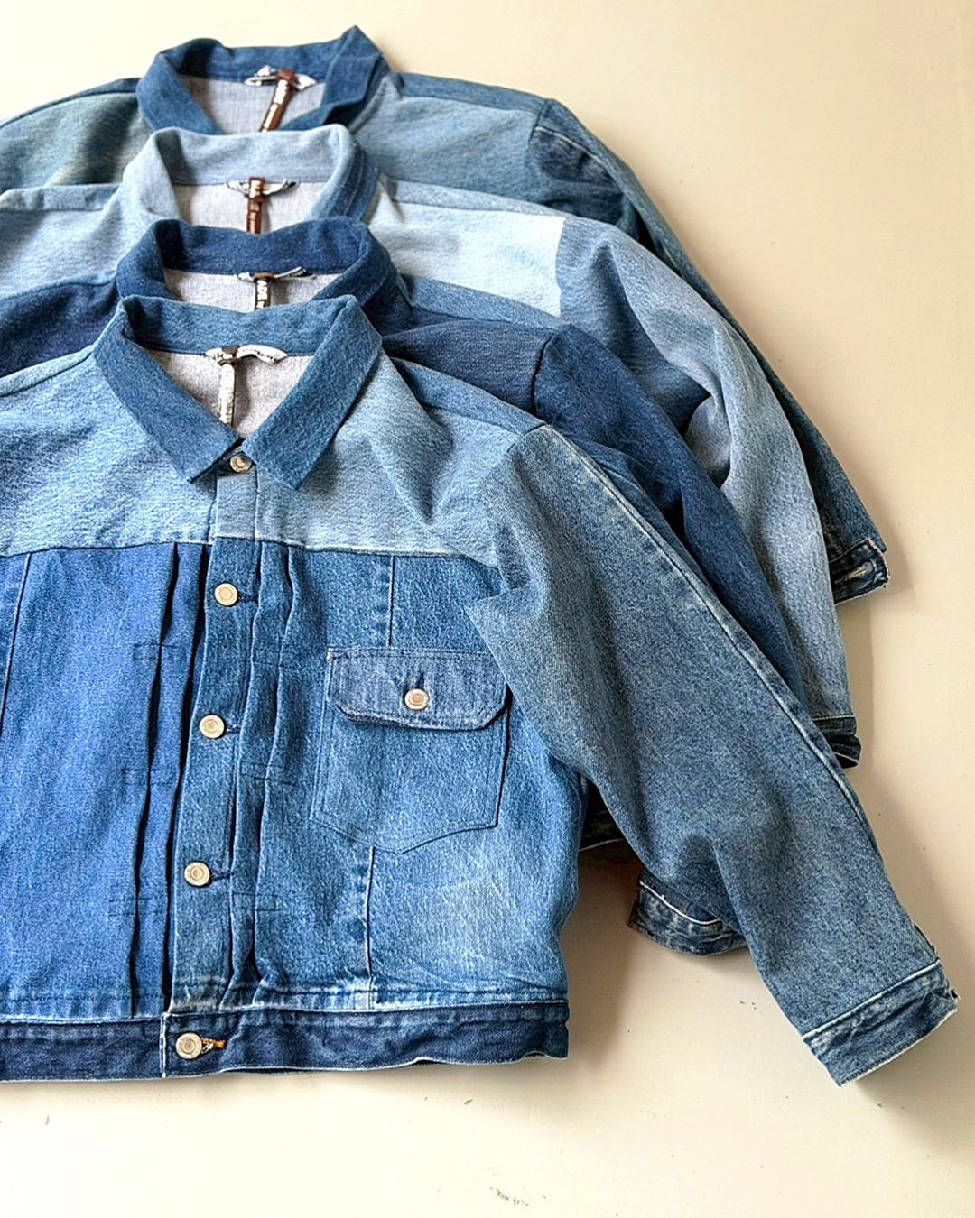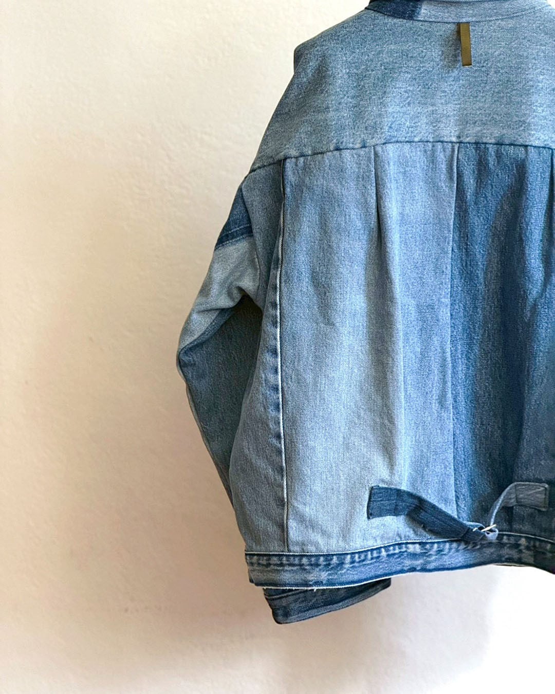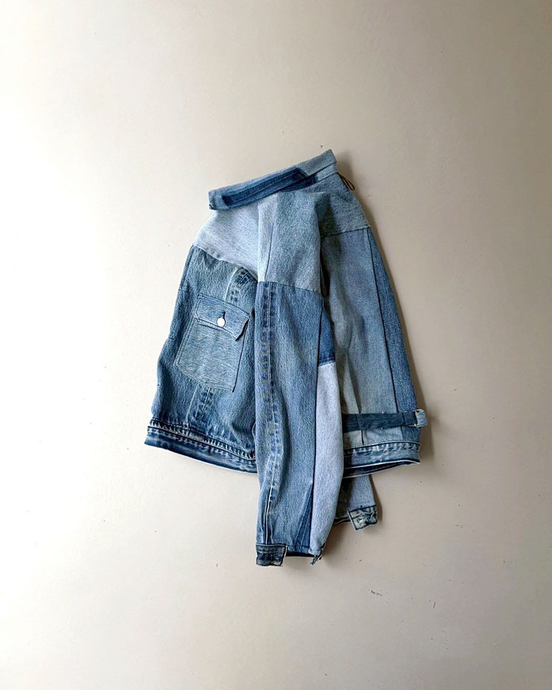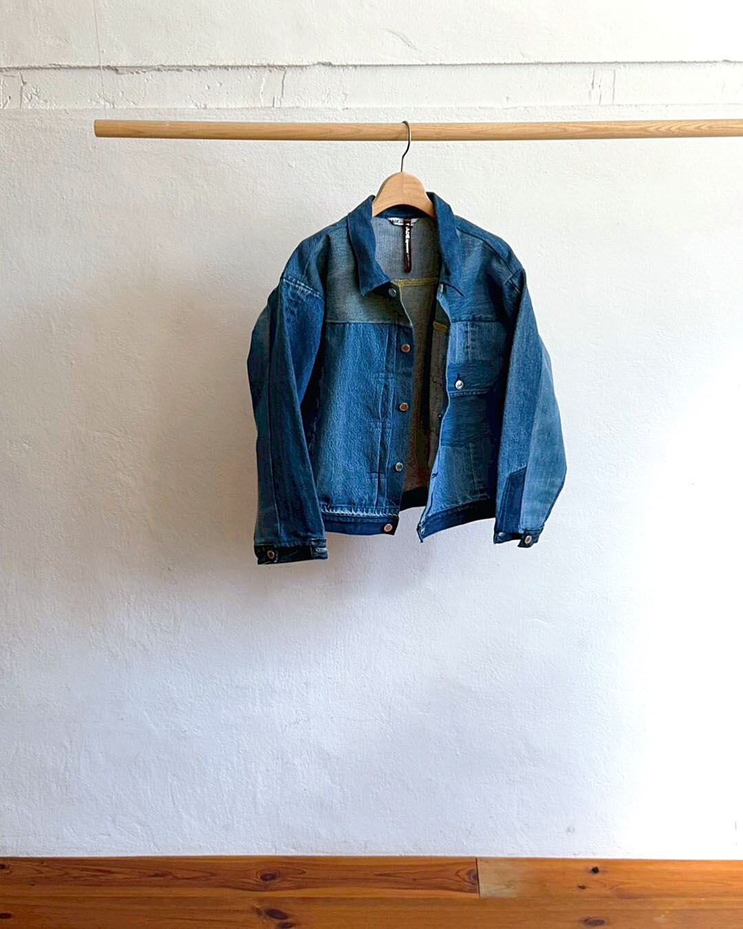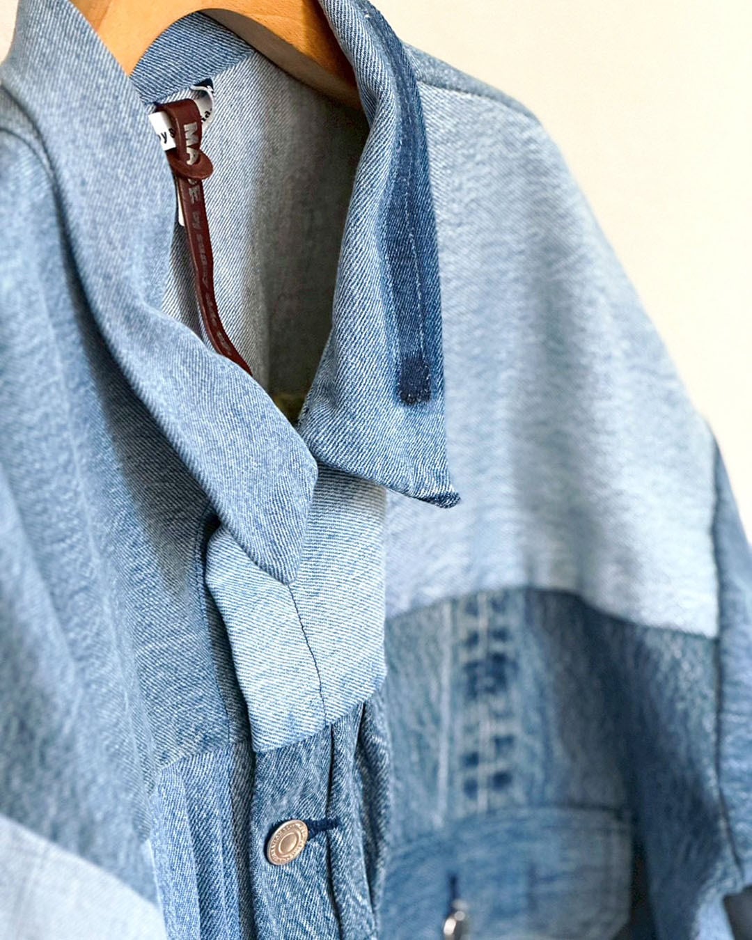 USEDデニムをほどき、パーツを組み直して仕立てられた、アートピースのようなデニムジャケット。