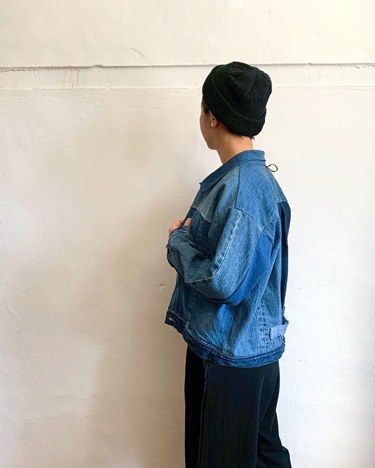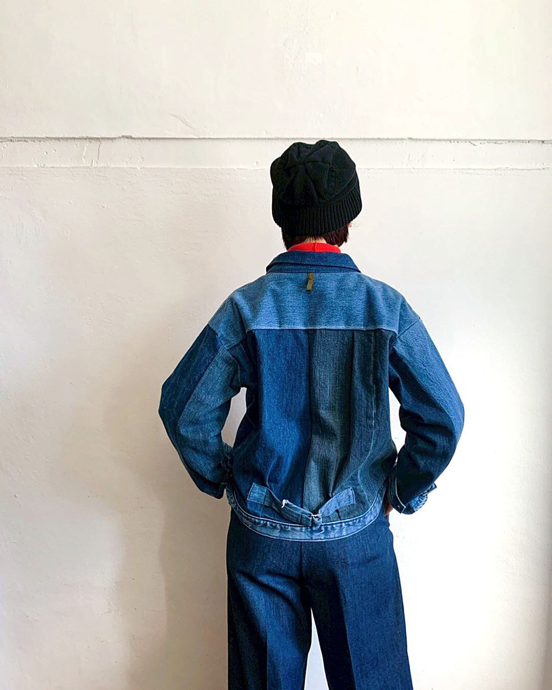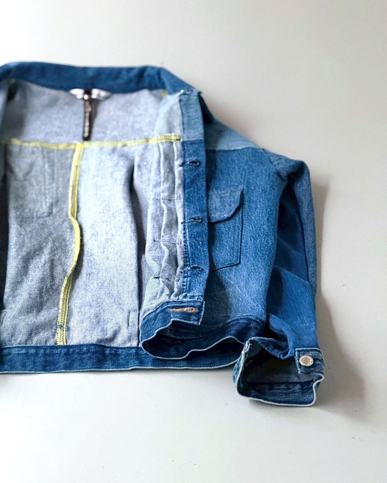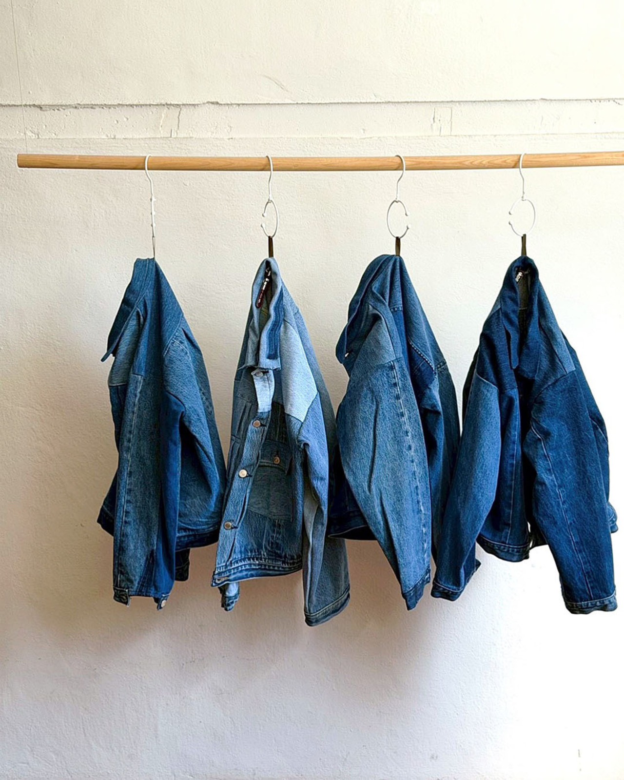 USEDデニムをほどき、パーツを組み直して仕立てられた、アートピースのようなデニムジャケット。