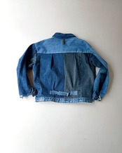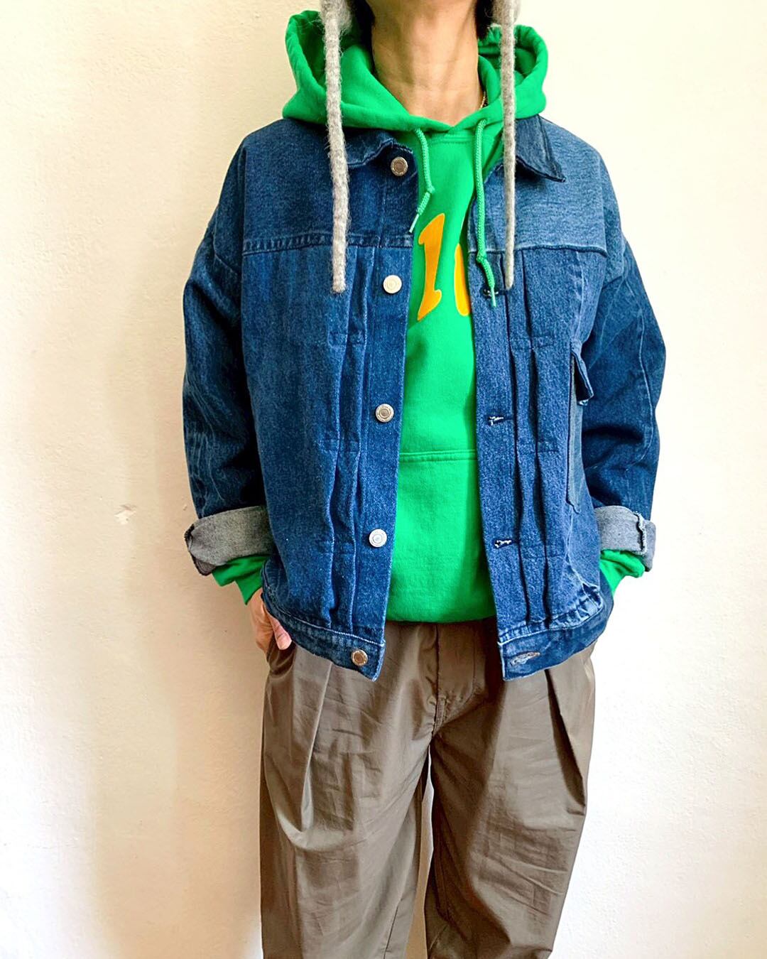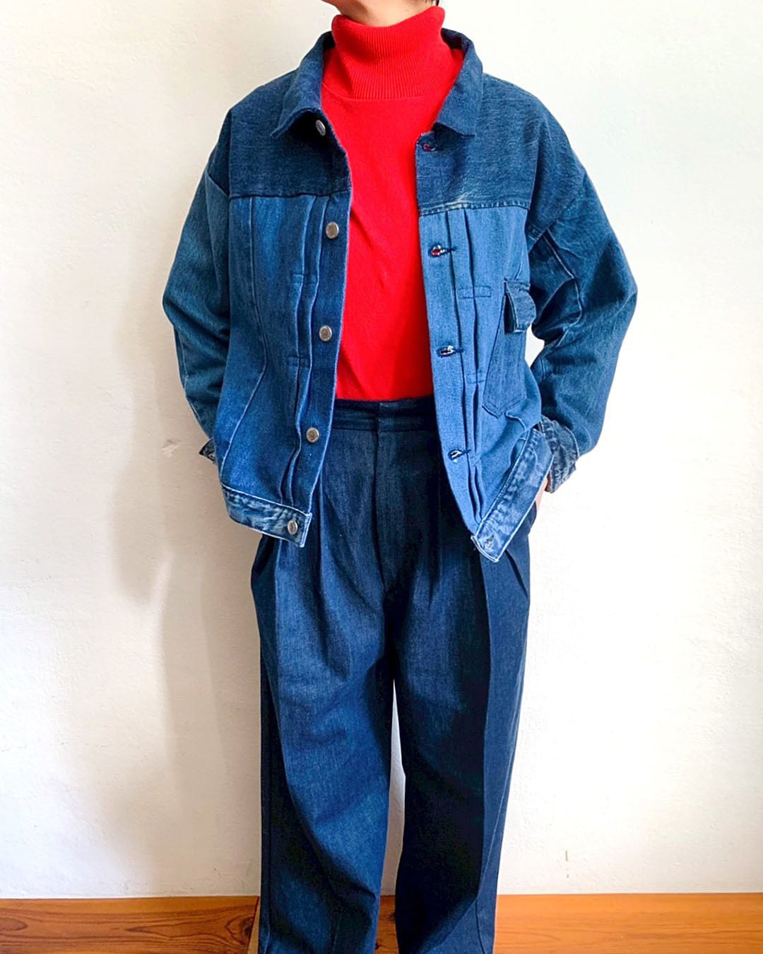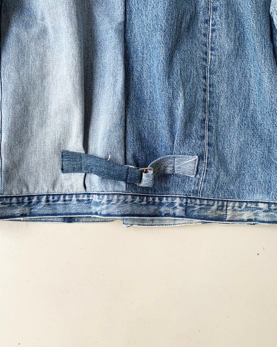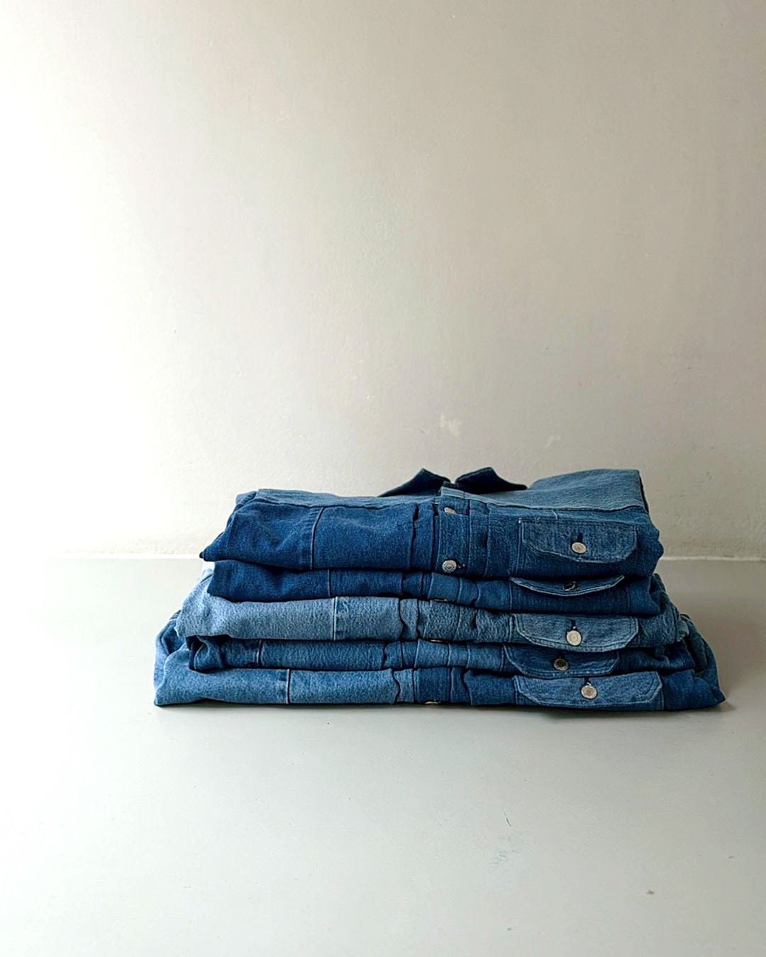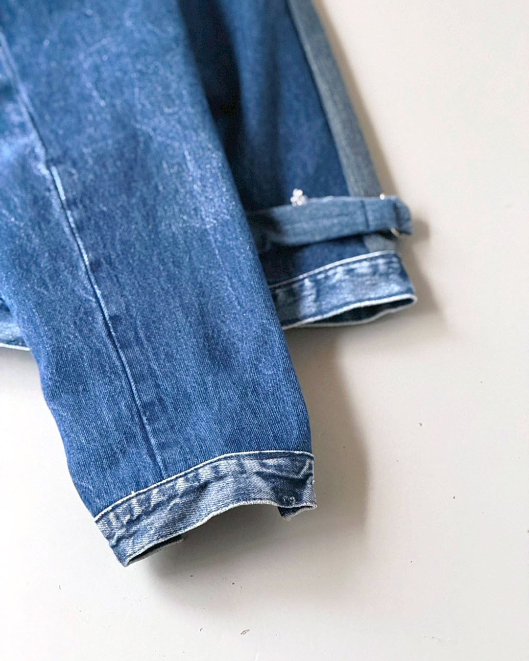 USEDデニムをほどき、パーツを組み直して仕立てられた、アートピースのようなデニムジャケット。