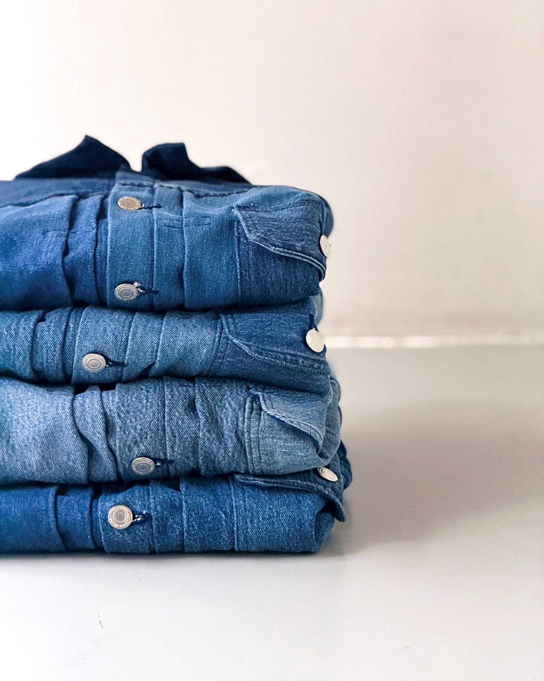 もとのデニムのアタリが自然に浮かび上がるよう、配置にも細やかな配慮がなされています。