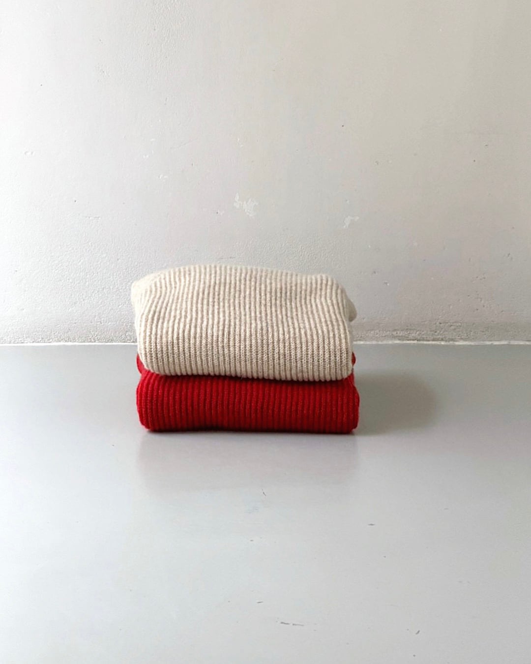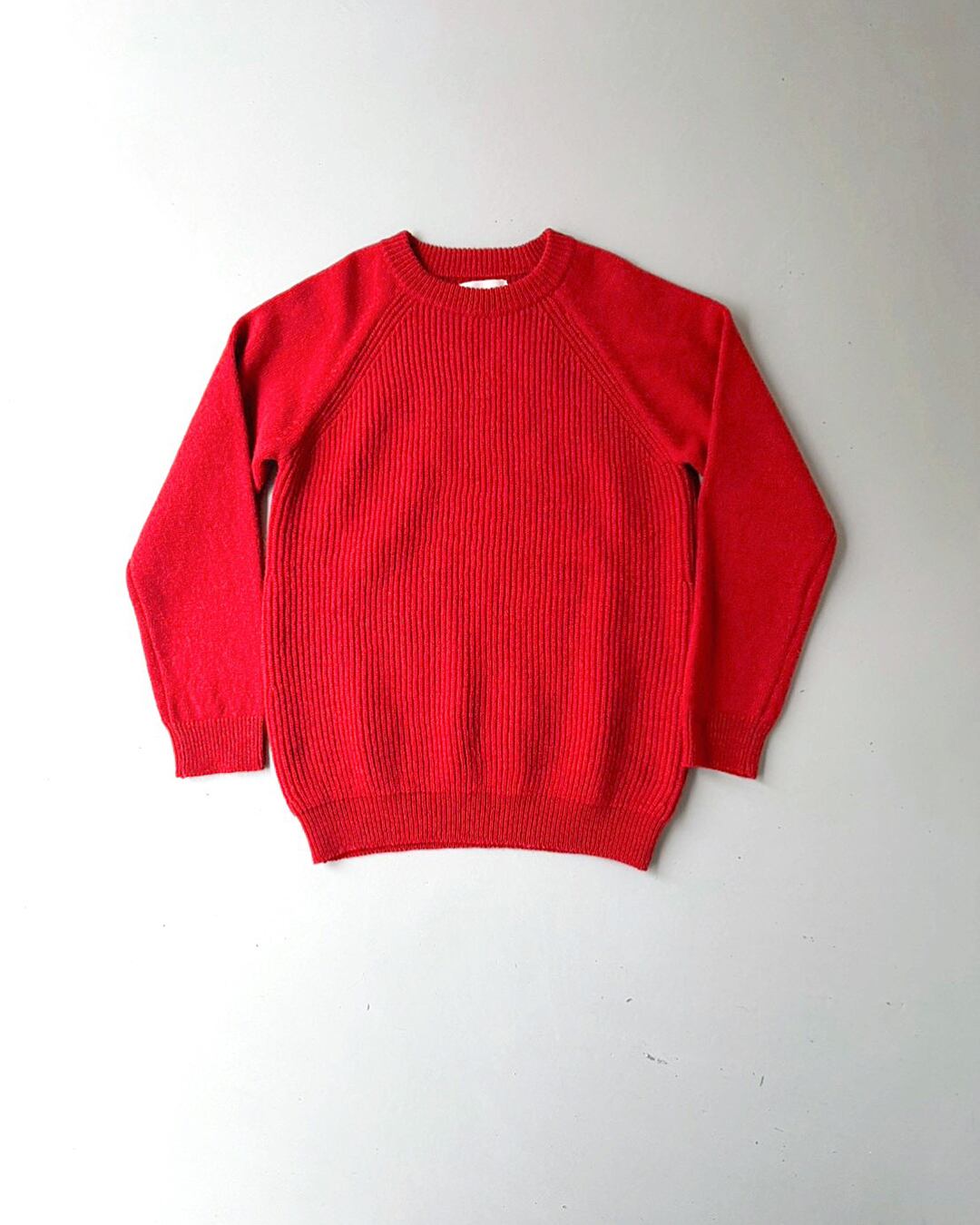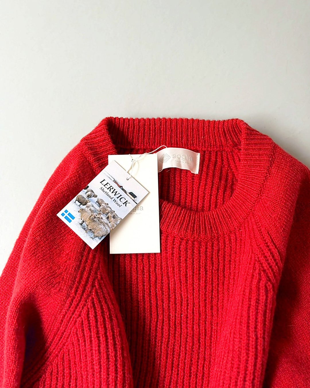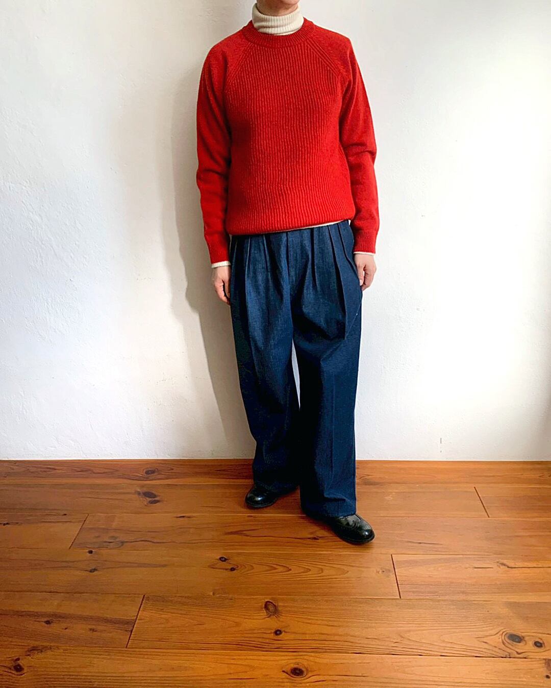 身頃と袖で編みの表情を切り替えたラグラン仕様が、肩まわりに自然な動きを生みます。