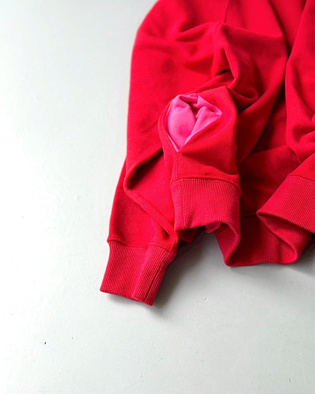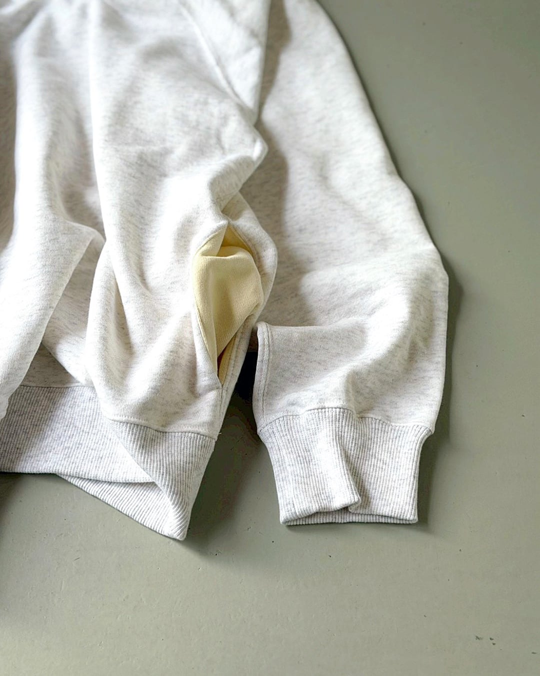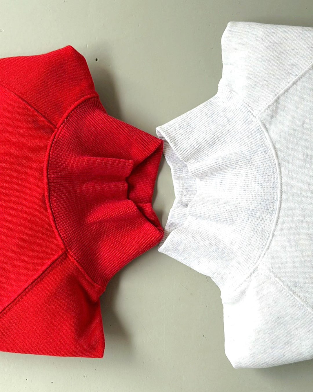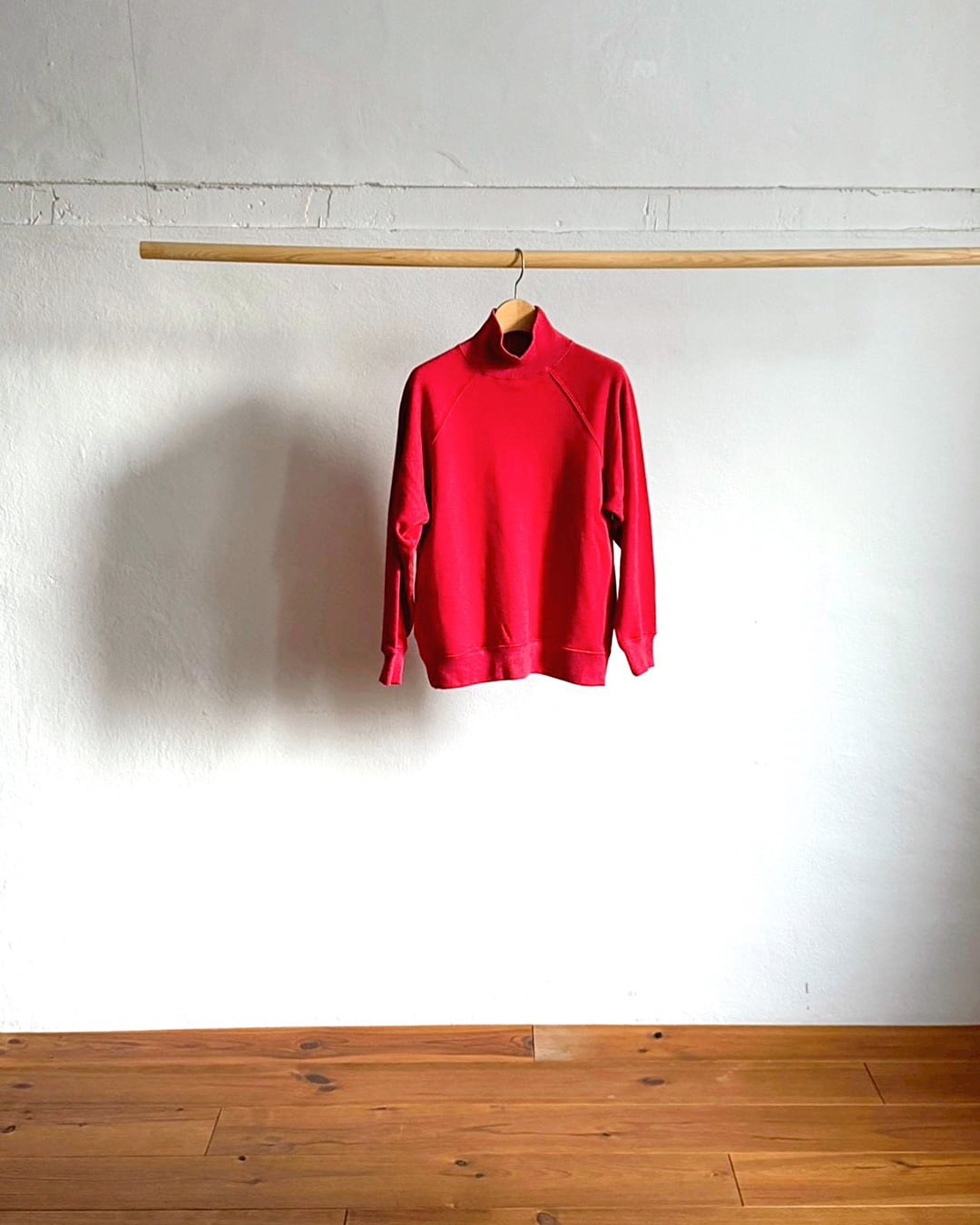 立ち上がりを抑えたネックとラグランスリーブが自然な可動性を生み、肩まわりをすっきり整えます。