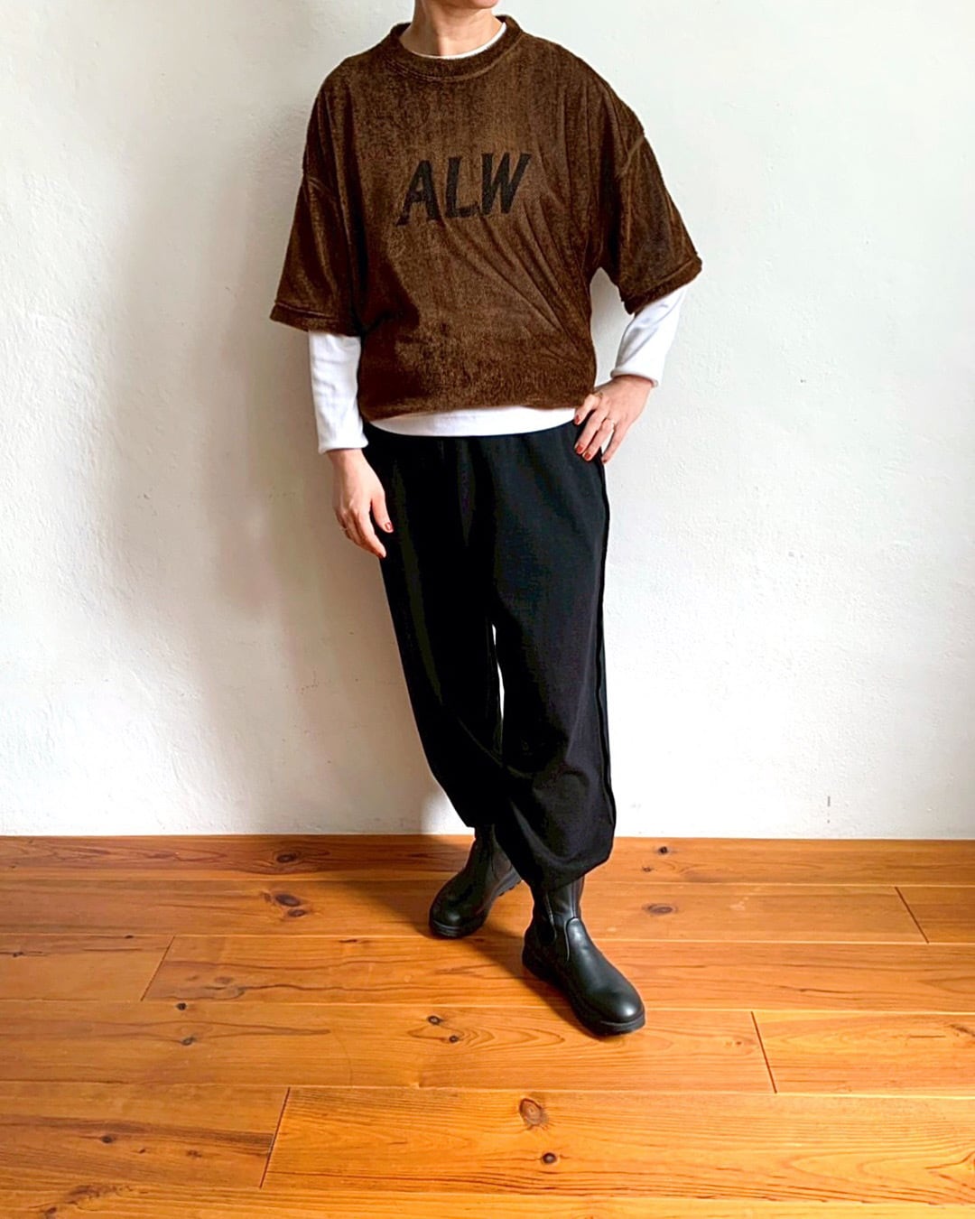 ルーズなシルエットに胸の“ALW”ロゴがさりげないポイントです。