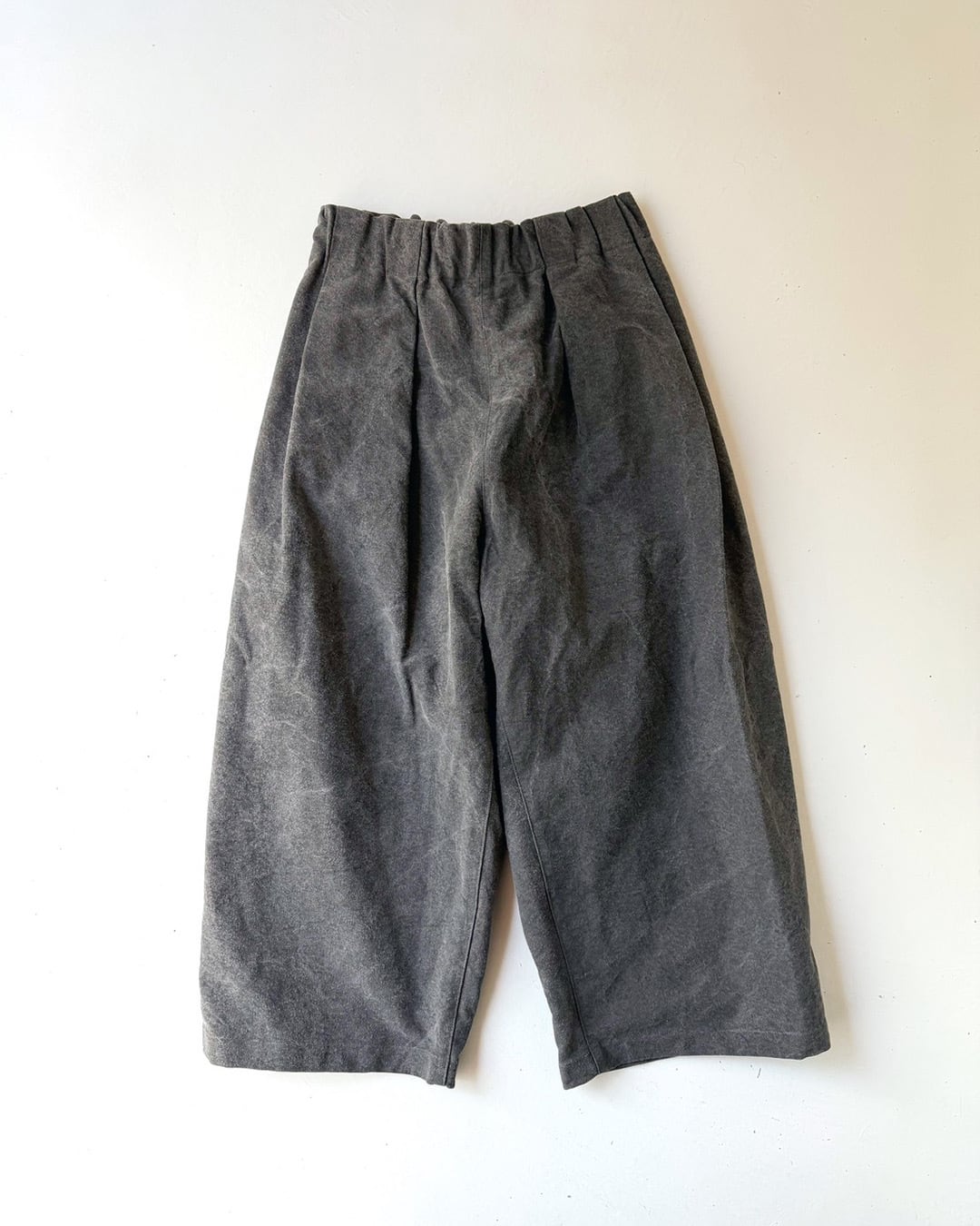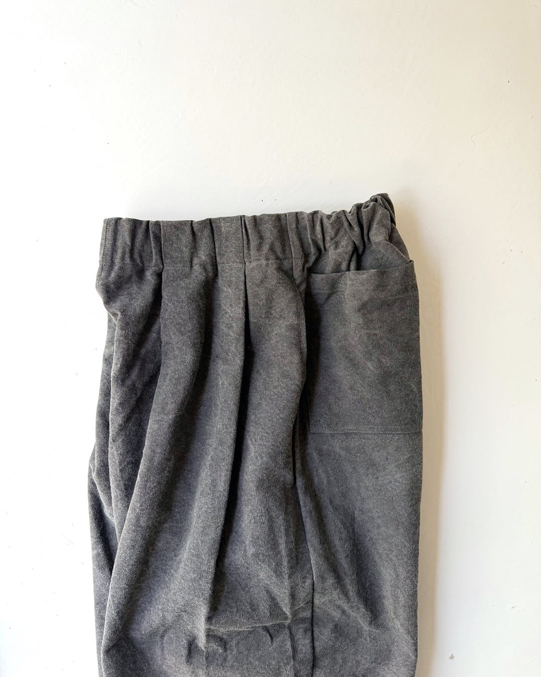 程よく地厚で体のラインを拾いにくい生地感に、ウエストゴム仕様。