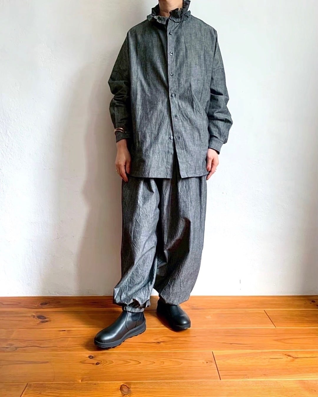 コットンリネンのダンガリーは程よいシャリ感のあるタッチで、シーズンレスで着回しができます。