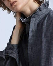 ネックラインに施したフリルが、無地のダンガリー生地には端正な表情を、チェック柄のフランネルには女性らしいニュアンスを添えます。