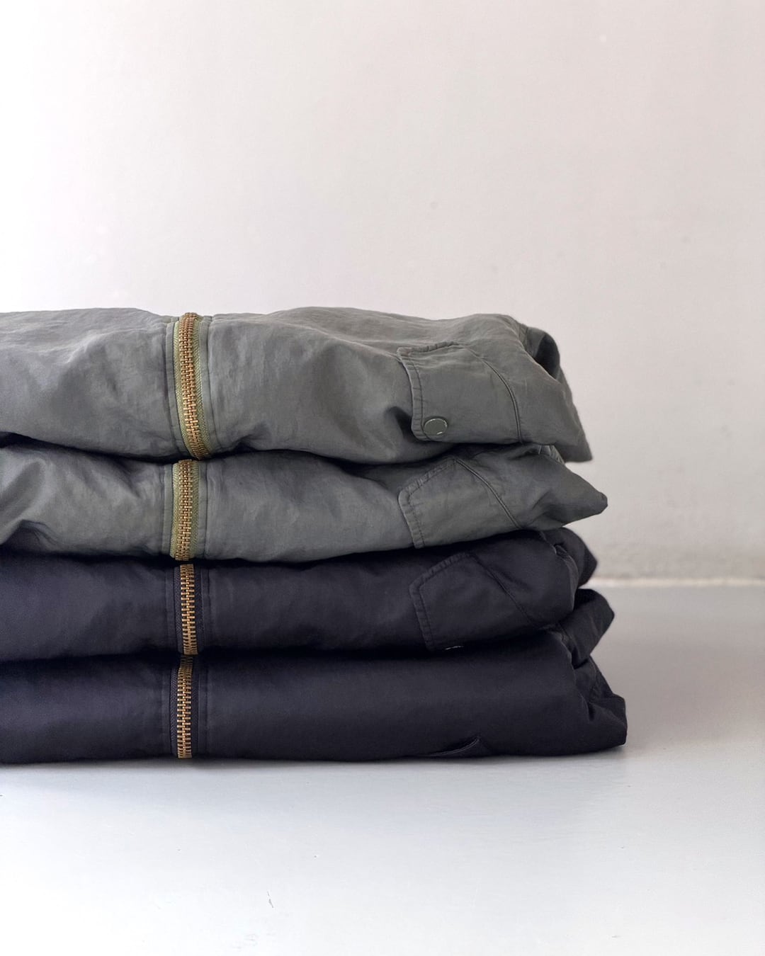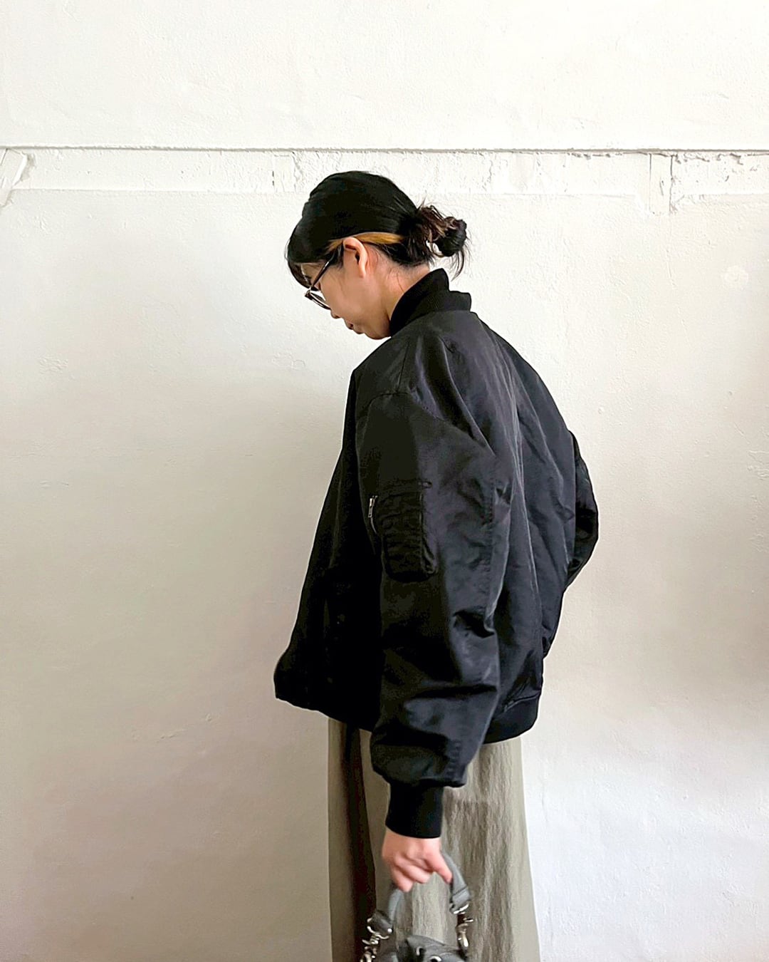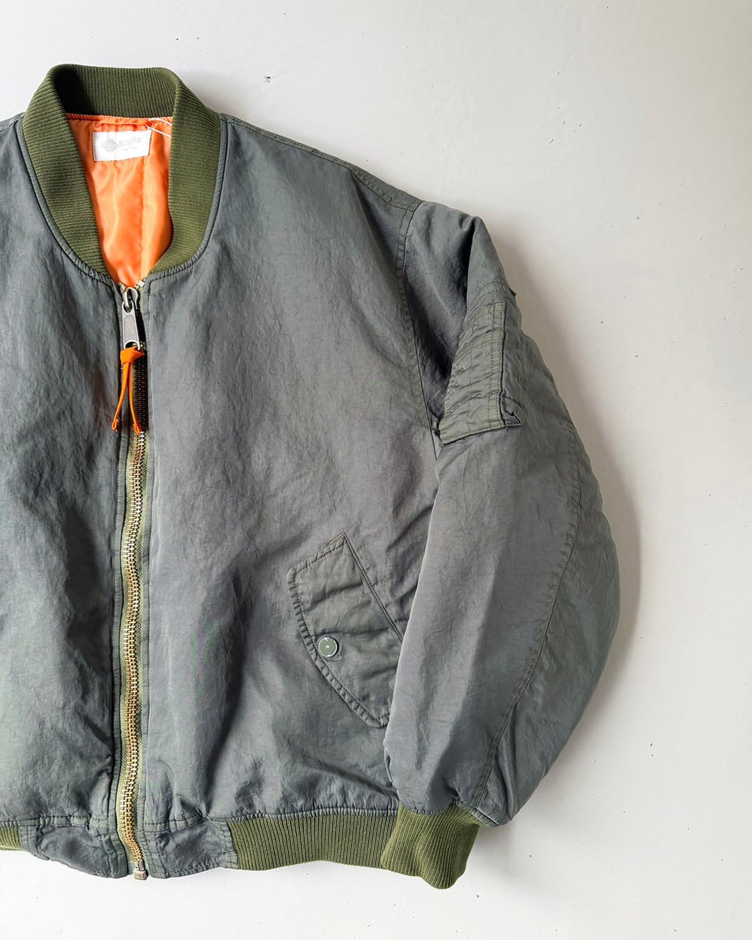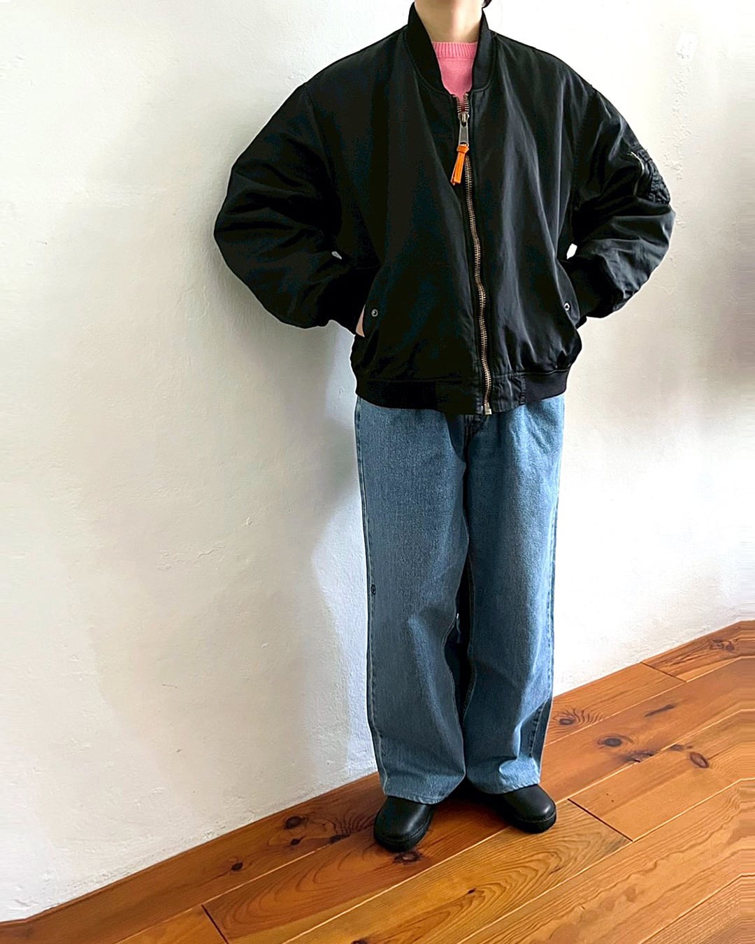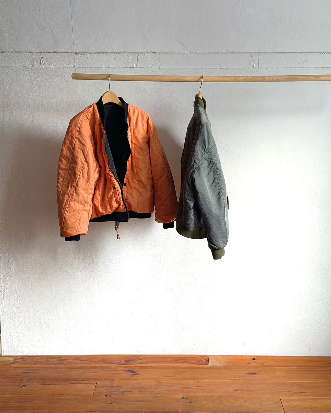 ふっくらと丸みを帯びて動きやすい袖周りと、コンパクト丈。一般的なMA-1よりも中綿の分量を抑える事で軽やかに羽織れるバランスに仕上がっています。