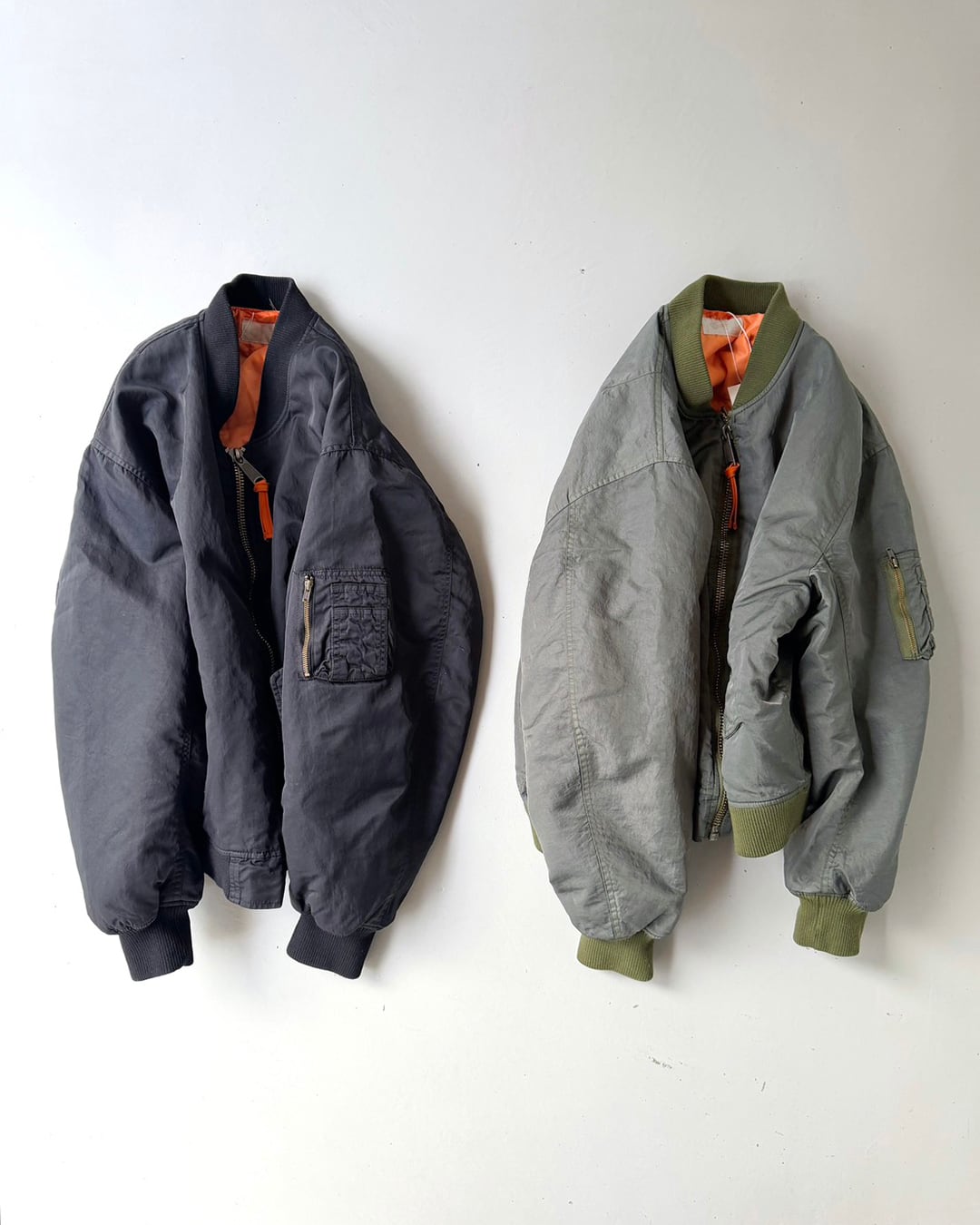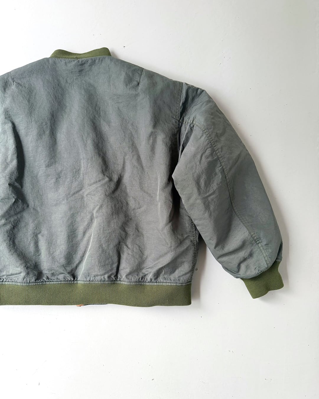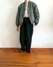 特殊な染色と洗い加工によって生まれる色ムラや陰影が重なり、長年着込んだようなヴィンテージ感が魅力のMA-1ブルゾン
