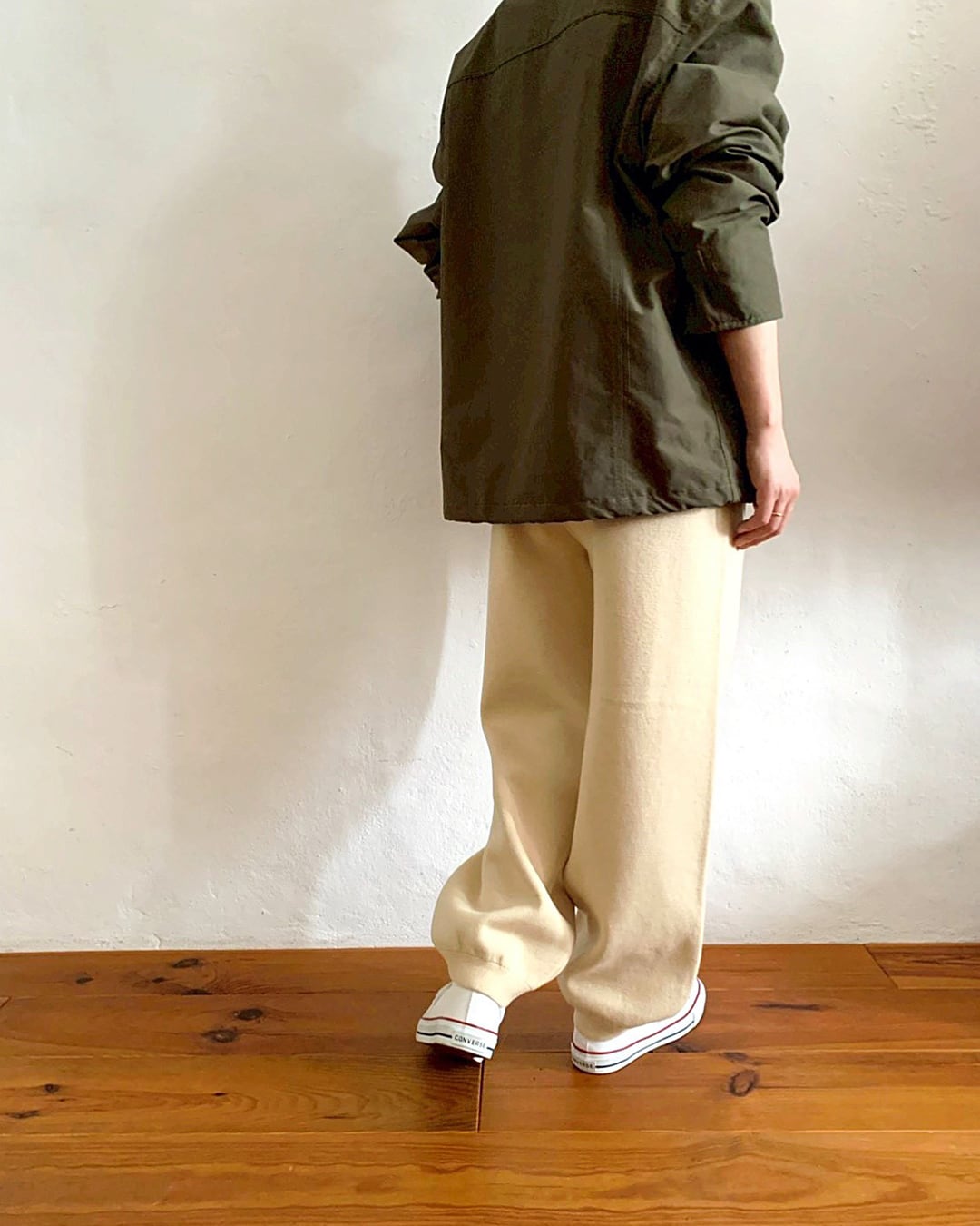 裾にはさりげなくリブを効かせ、合わせる靴を選ばず、幅広いスタイリングに馴染みます。