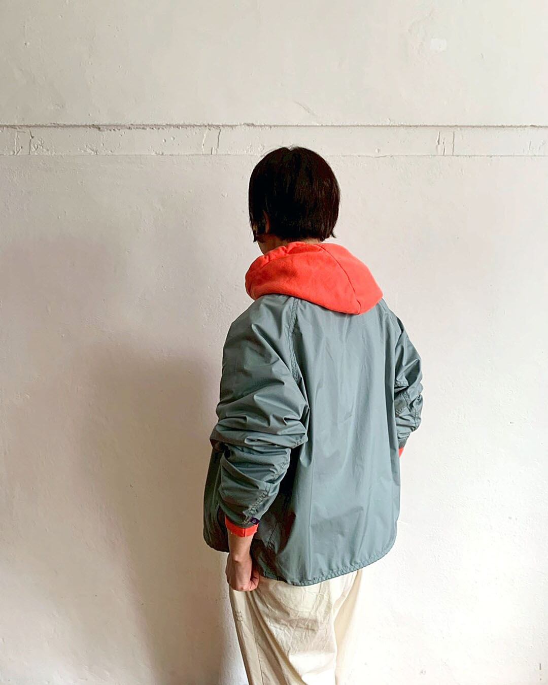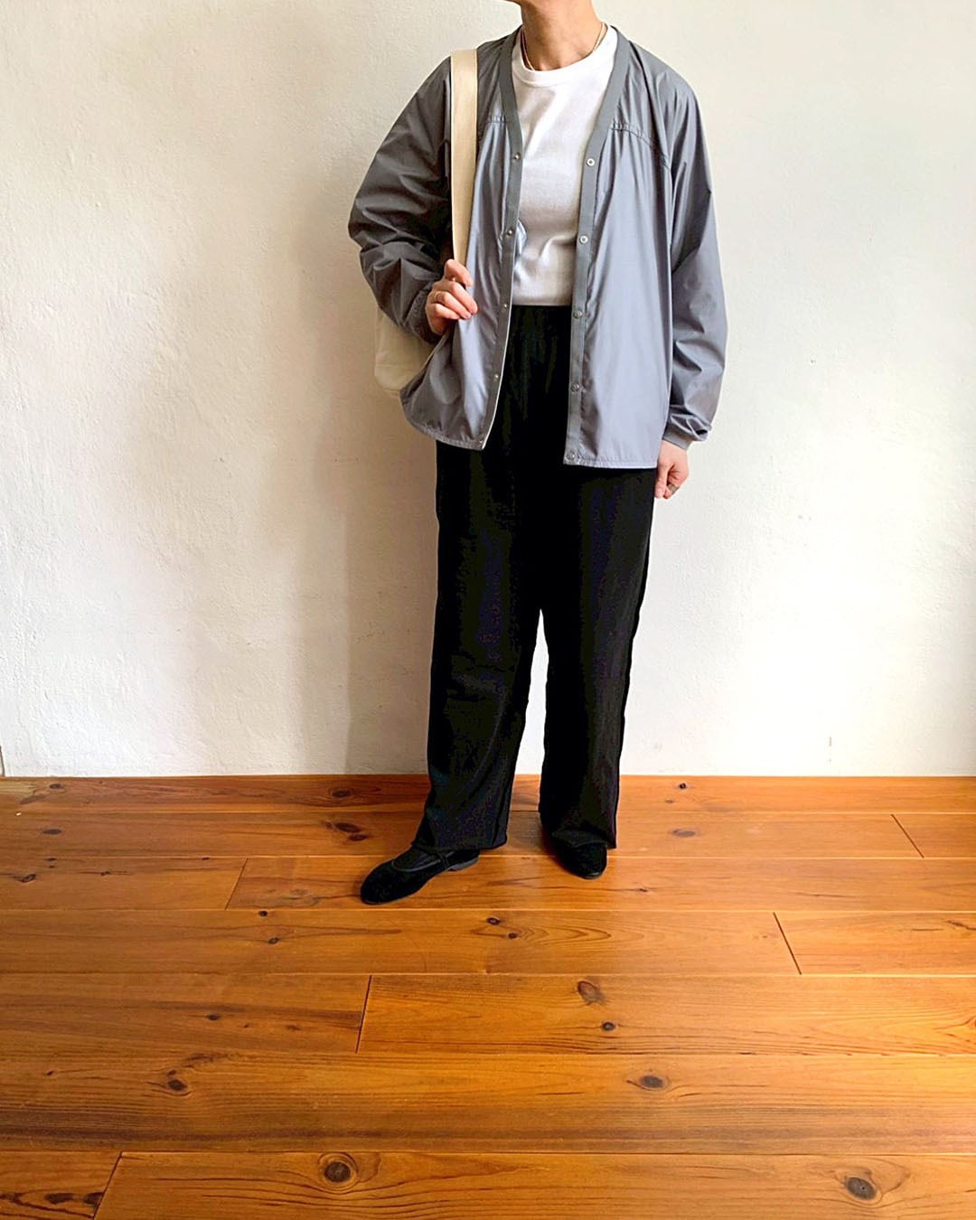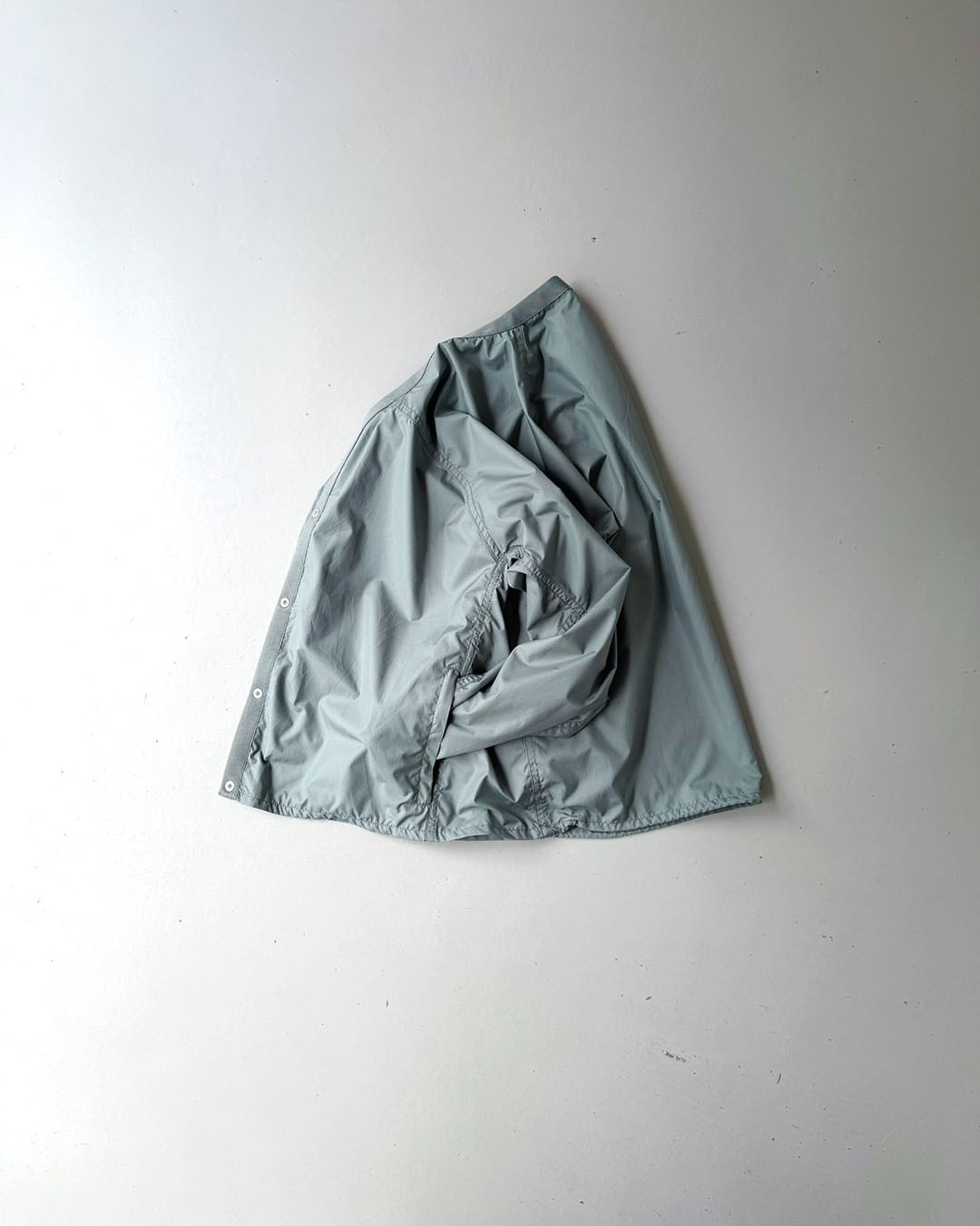 身幅にゆとりのあるシルエット。右に大きめのファスナーポケット、左内側にパッカブルポケット付きで、持ち運びにも便利な一枚です。