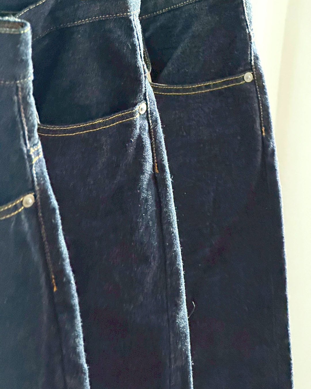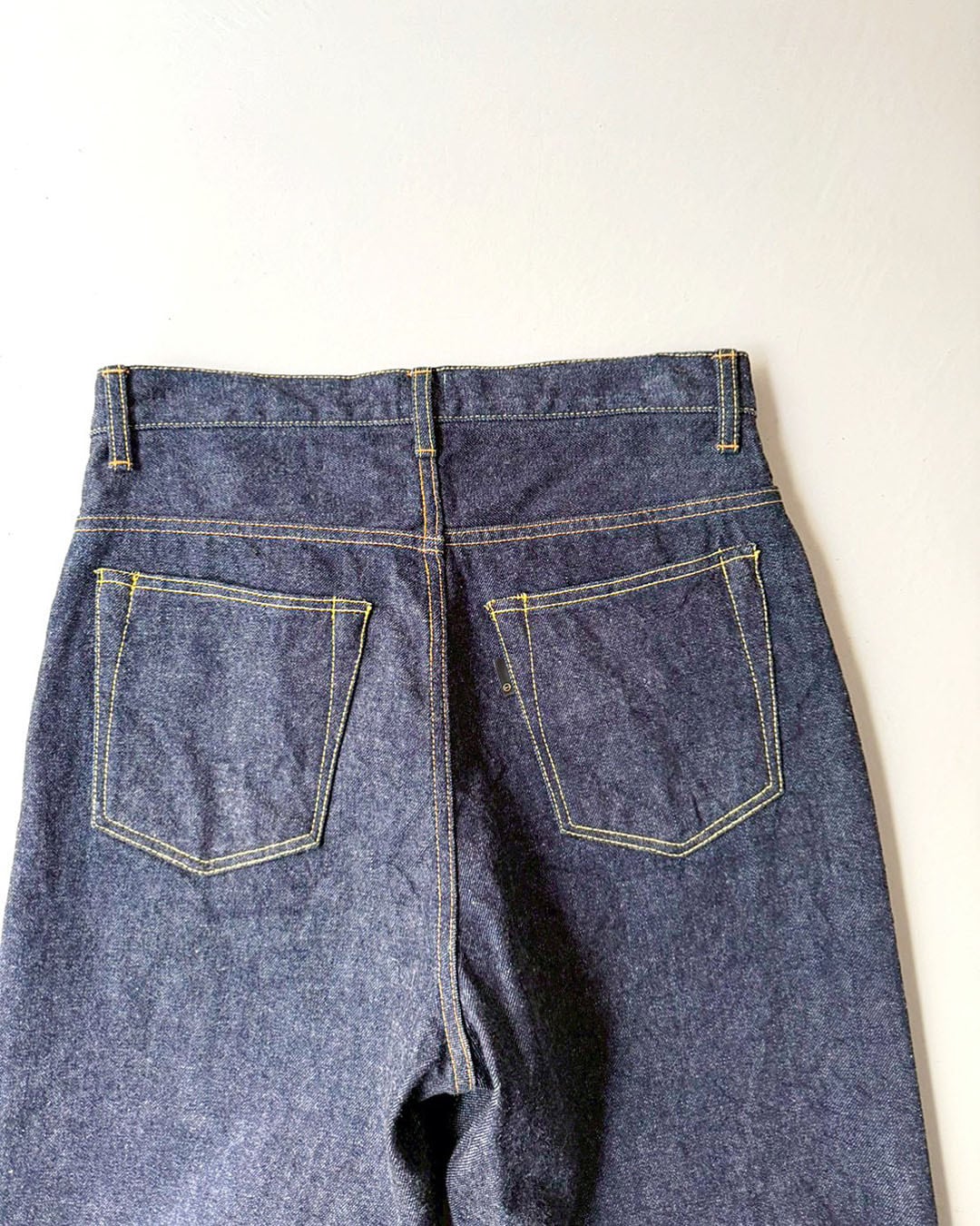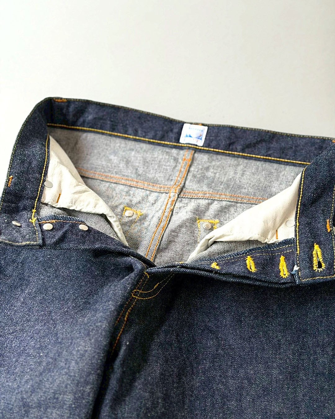 フロントはボタンフライ、裾はチェーンステッチ。