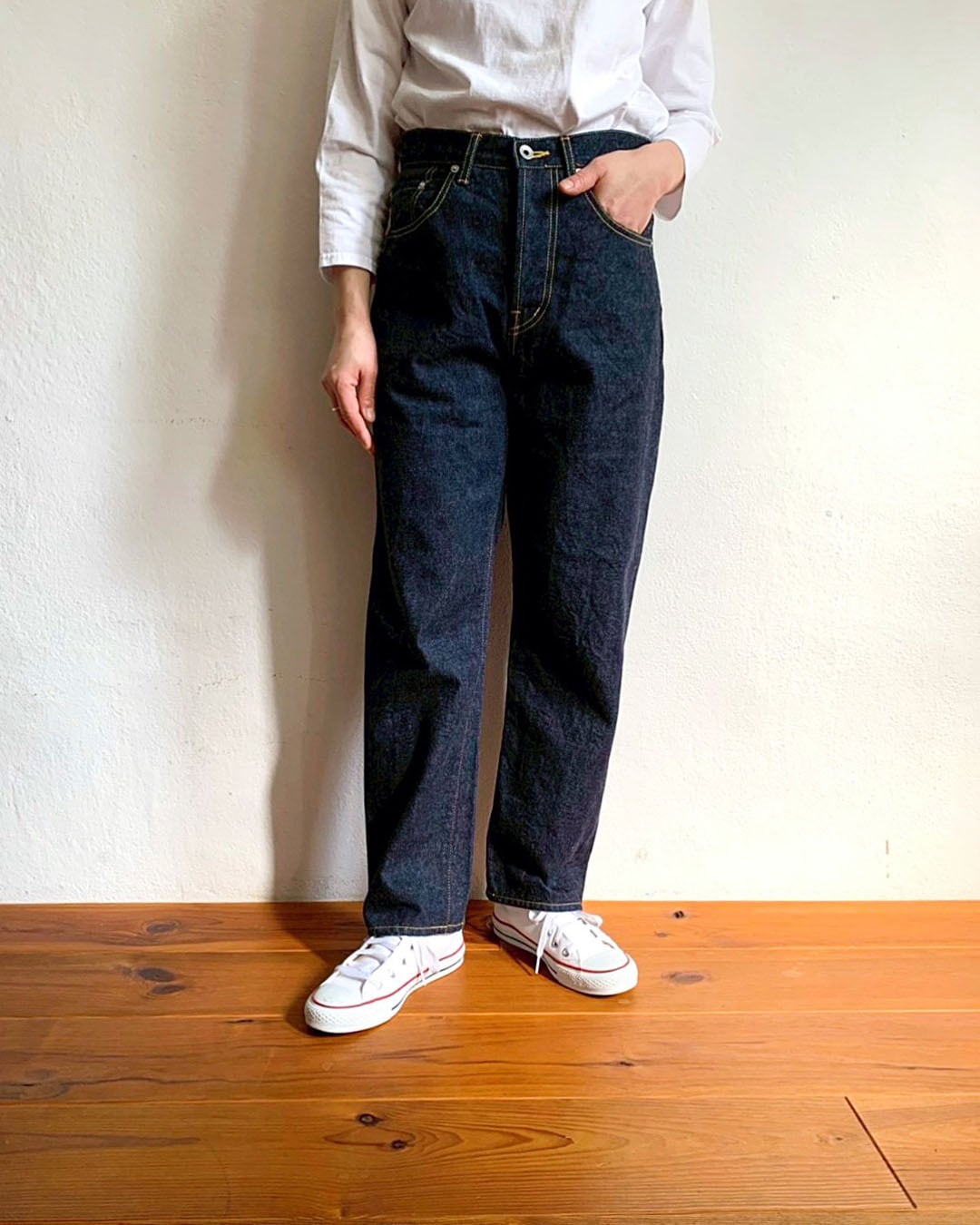 14オンスのセルヴィッチデニムを使用した5ポケットテーパードデニム。