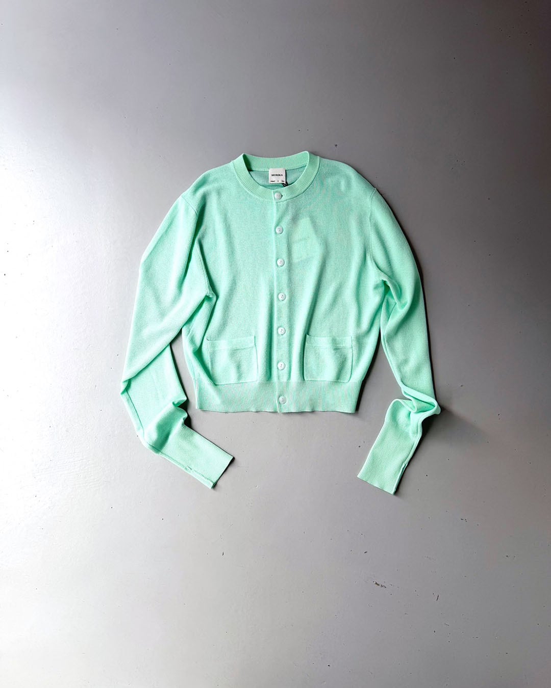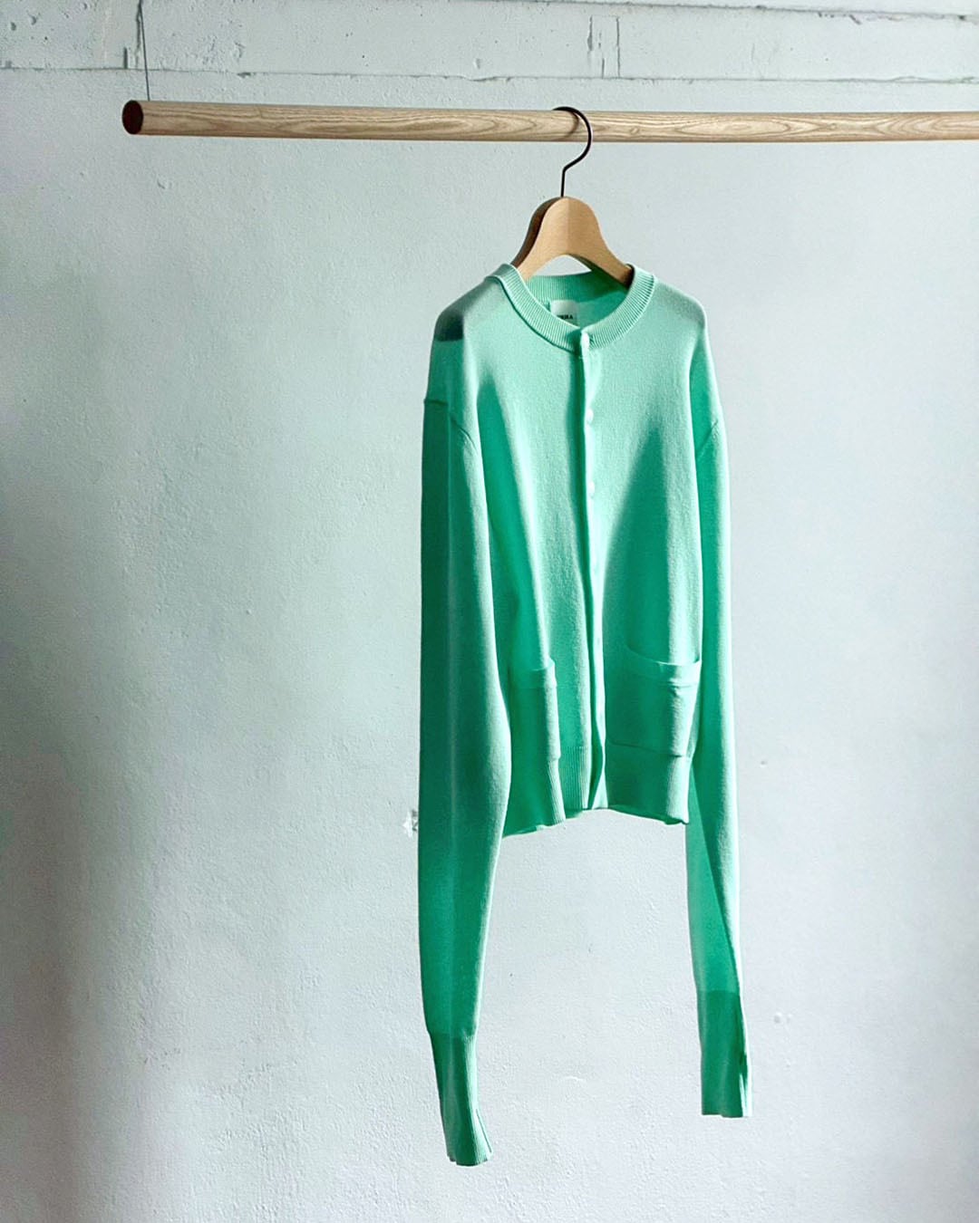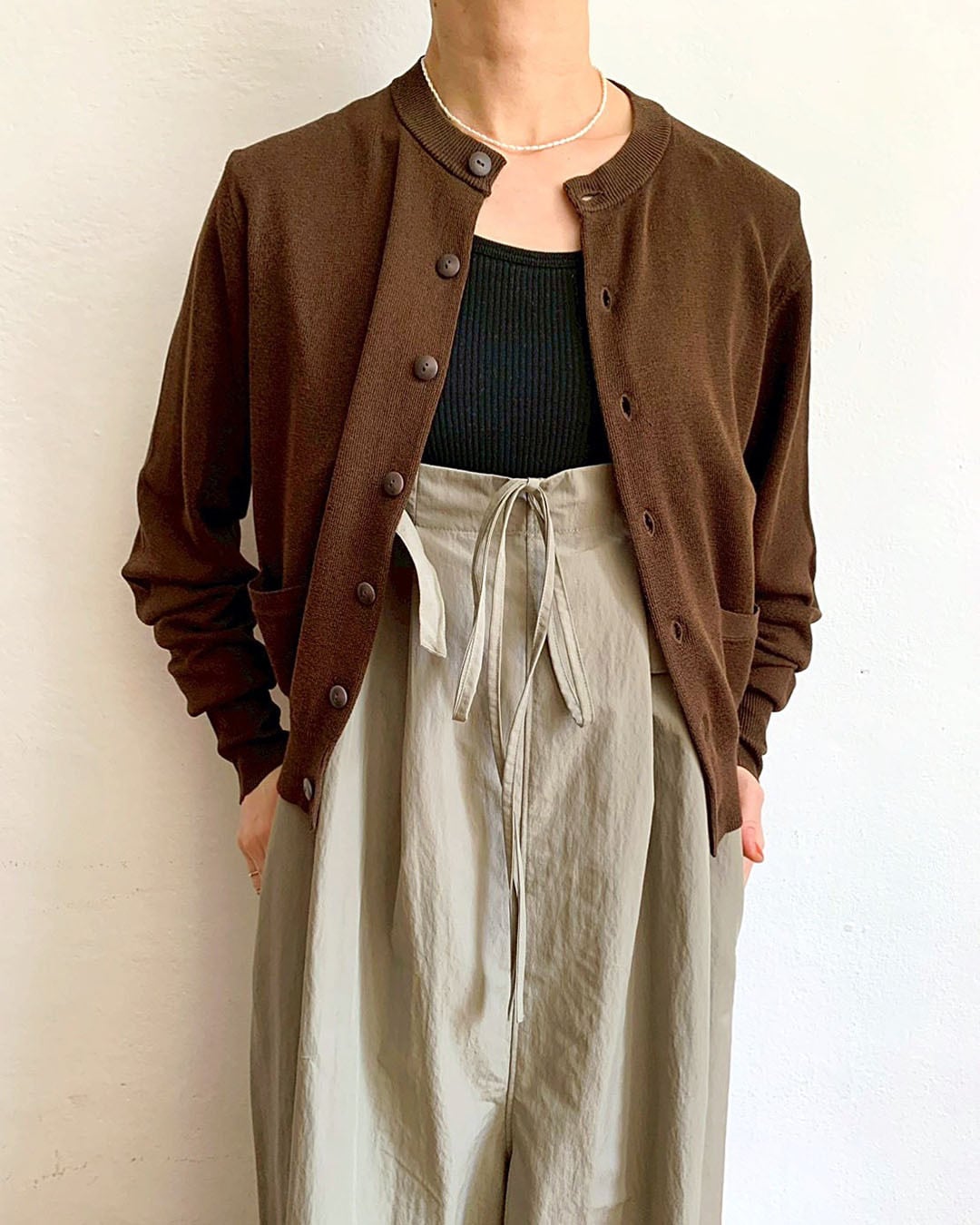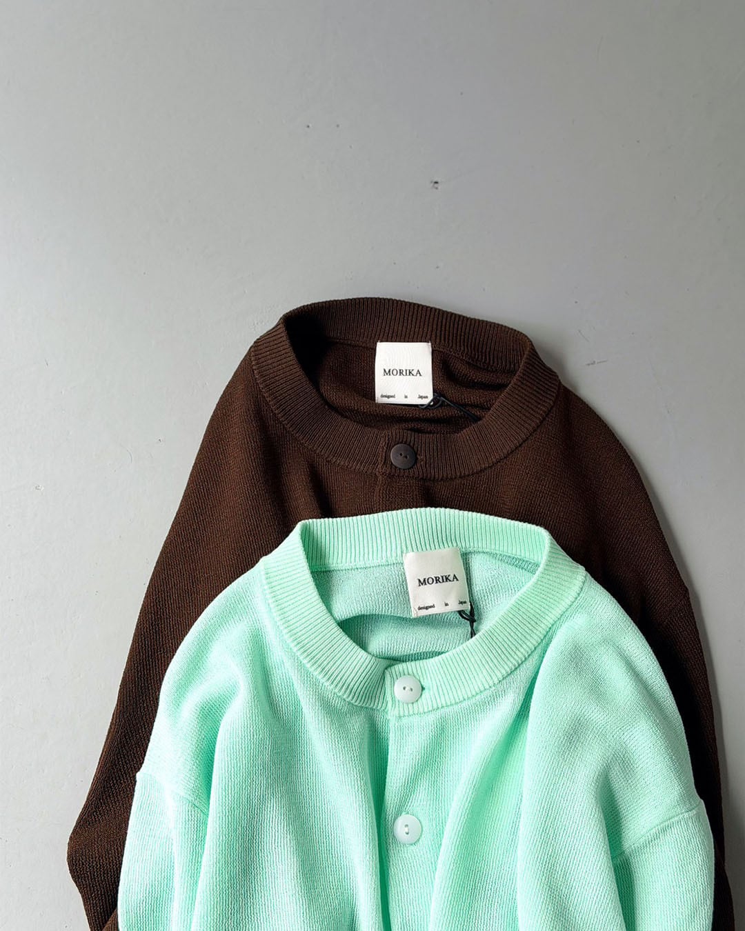 シルクのような穏やかな光沢と、ほのかなシャリ感をあわせ持つコットンアセデートのカーディガン。