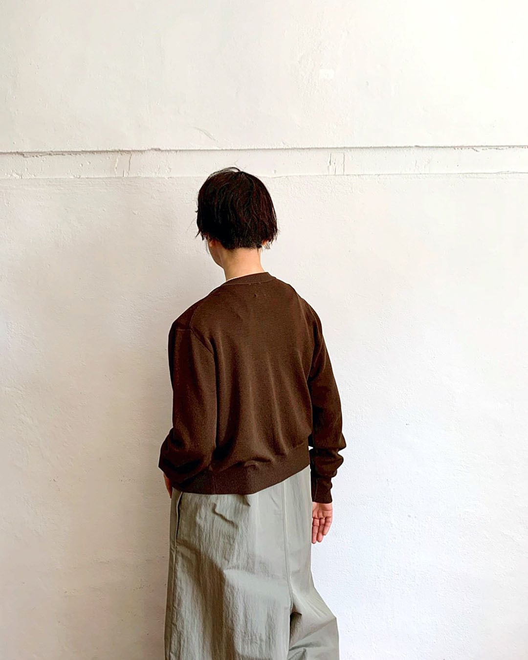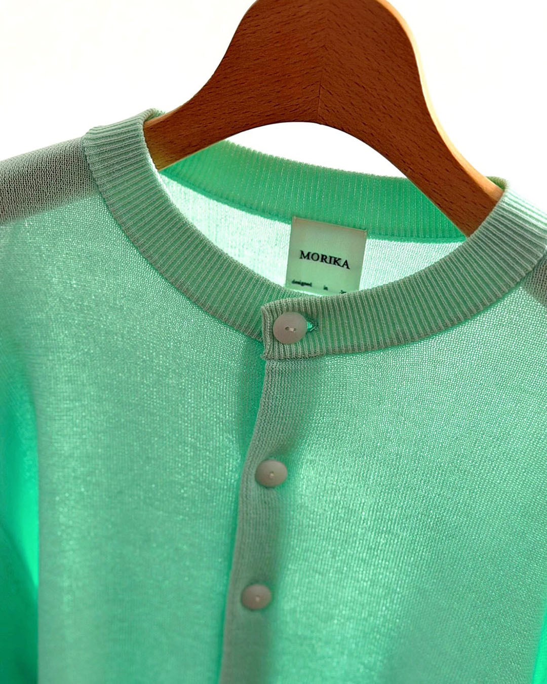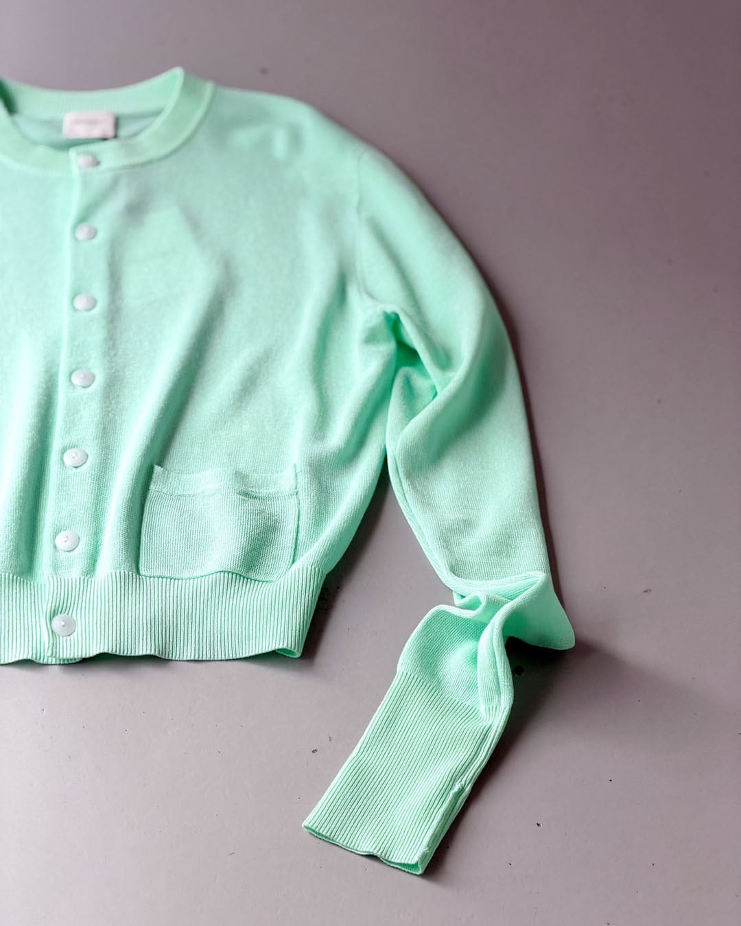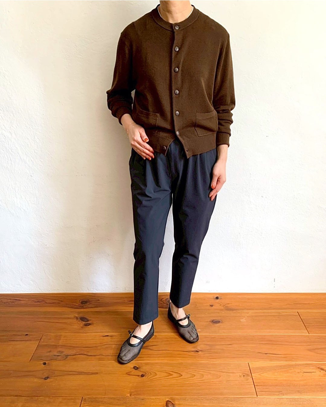 シルクのような穏やかな光沢と、ほのかなシャリ感をあわせ持つコットンアセデートのカーディガン。