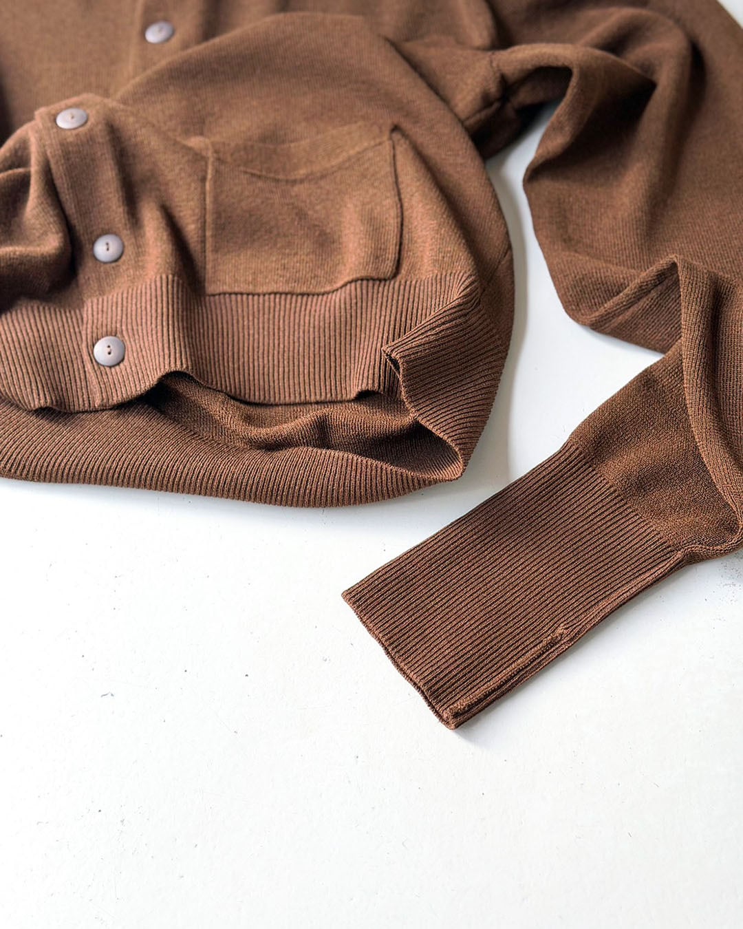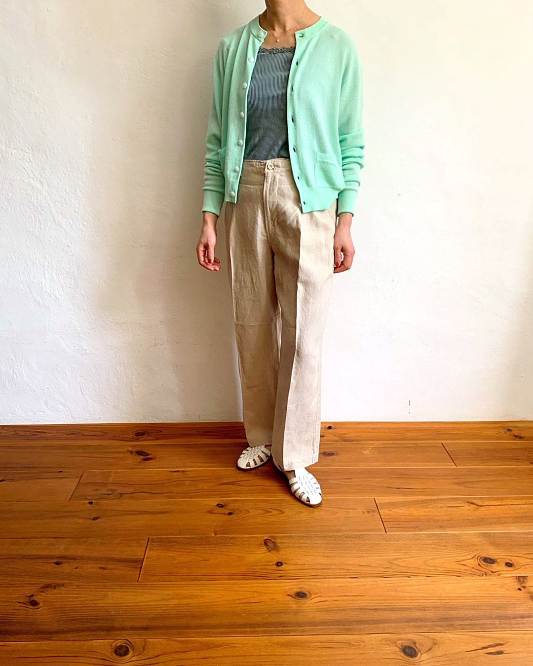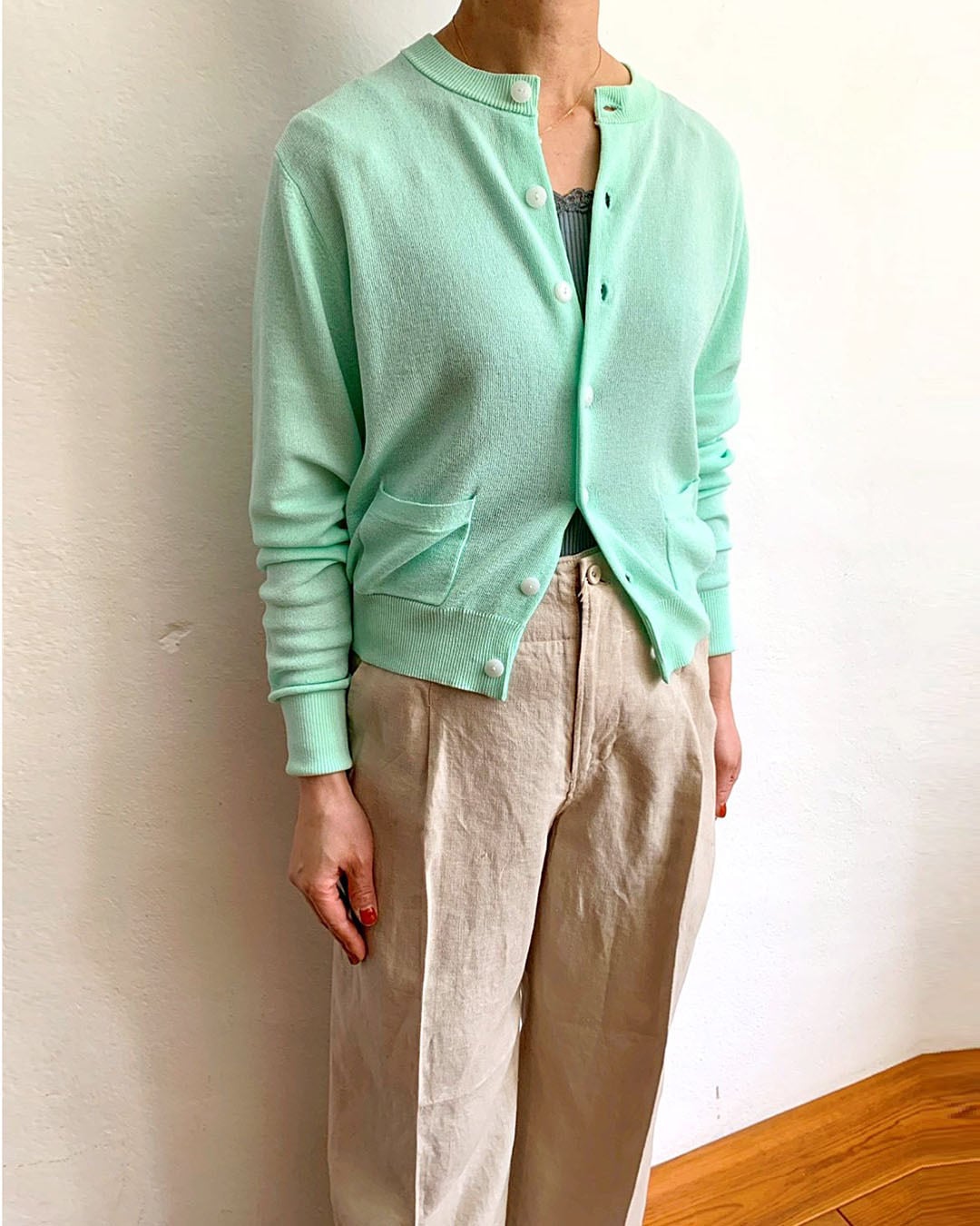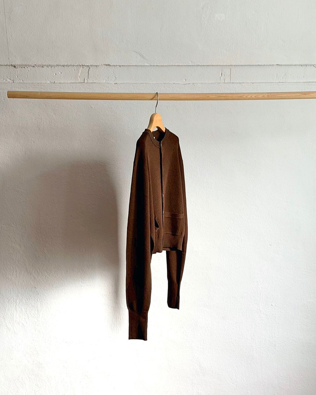 シルクのような穏やかな光沢と、ほのかなシャリ感をあわせ持つコットンアセデートのカーディガン。