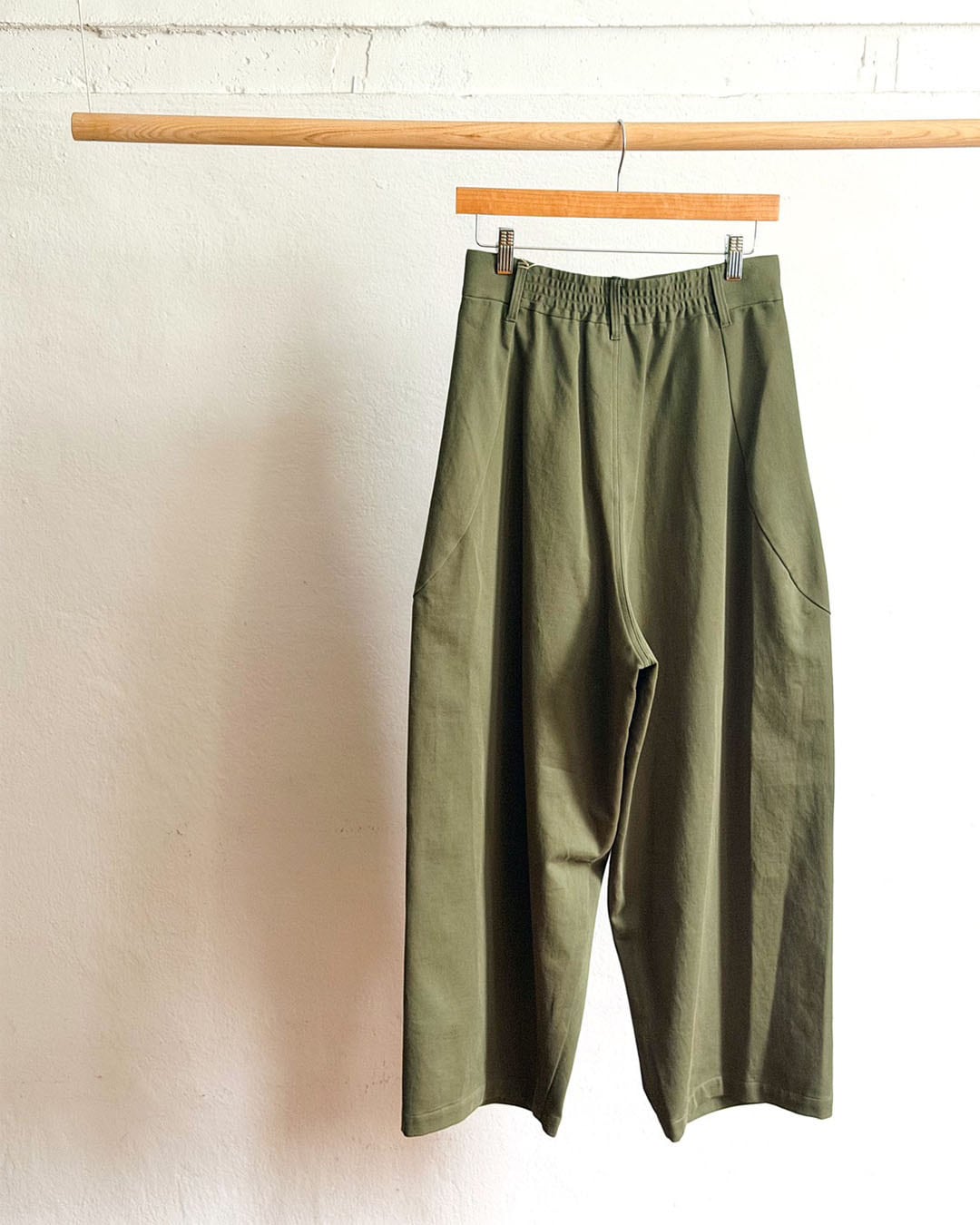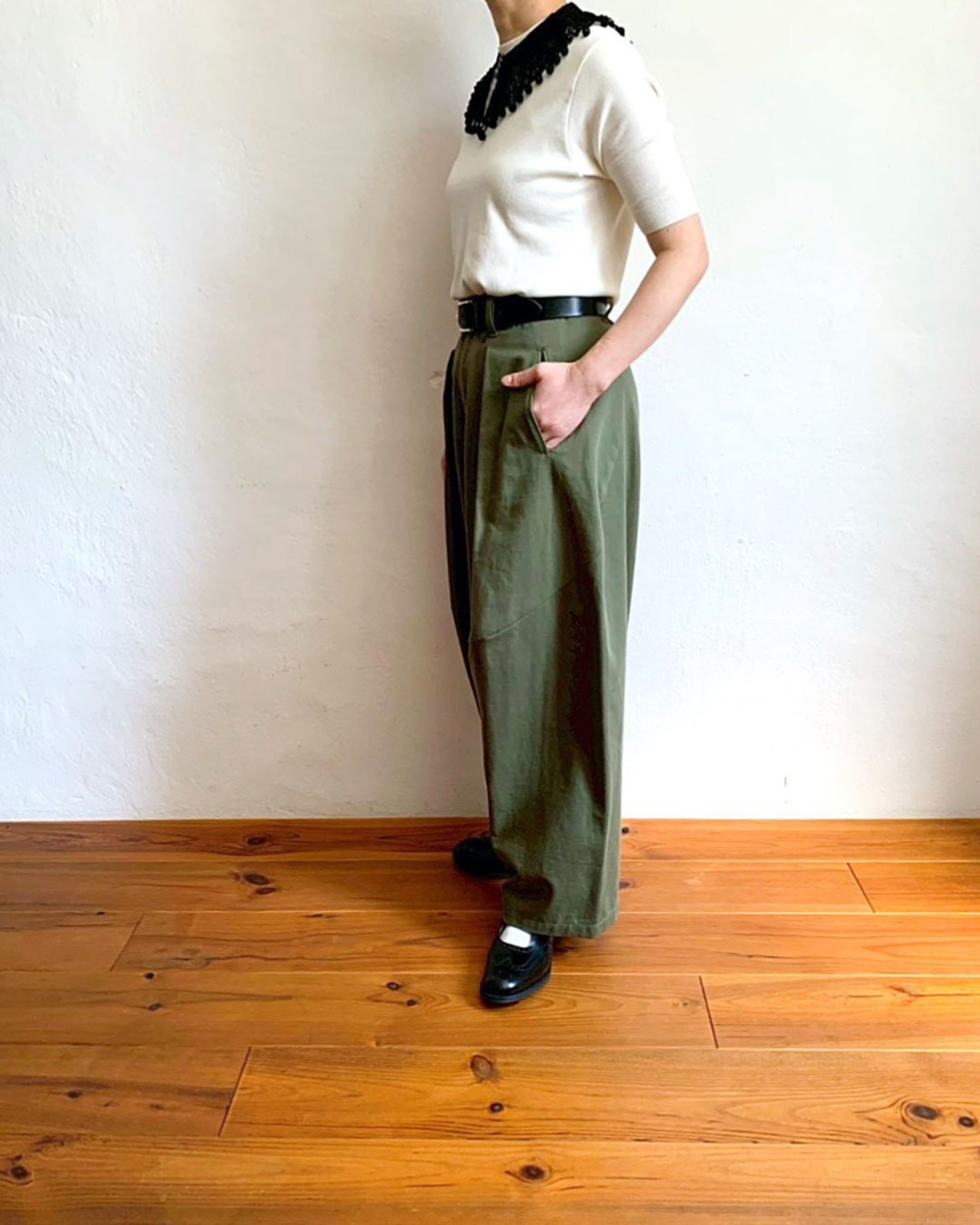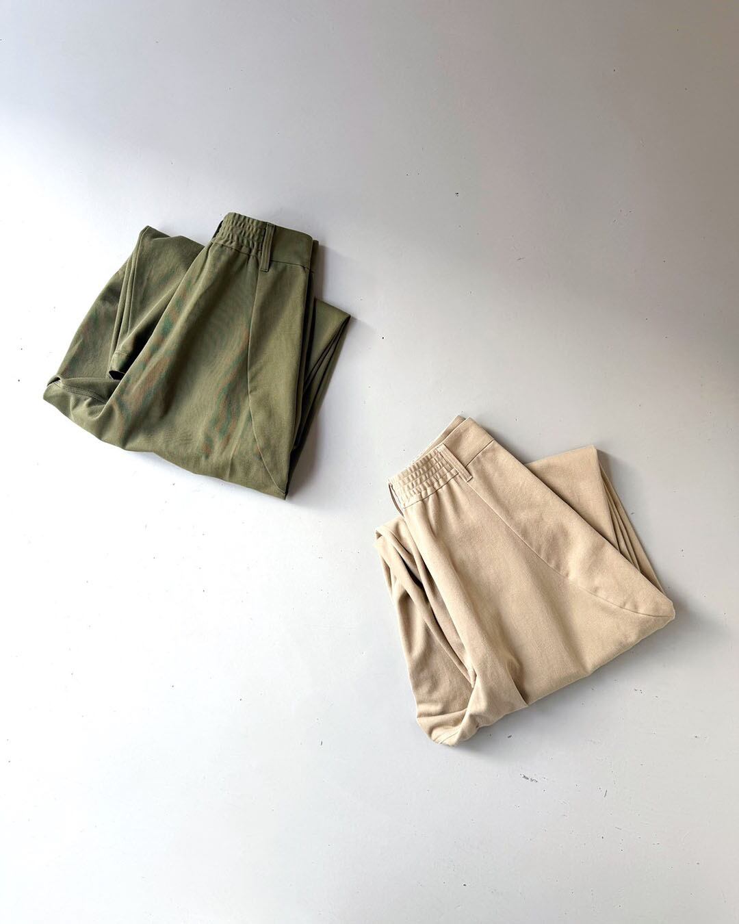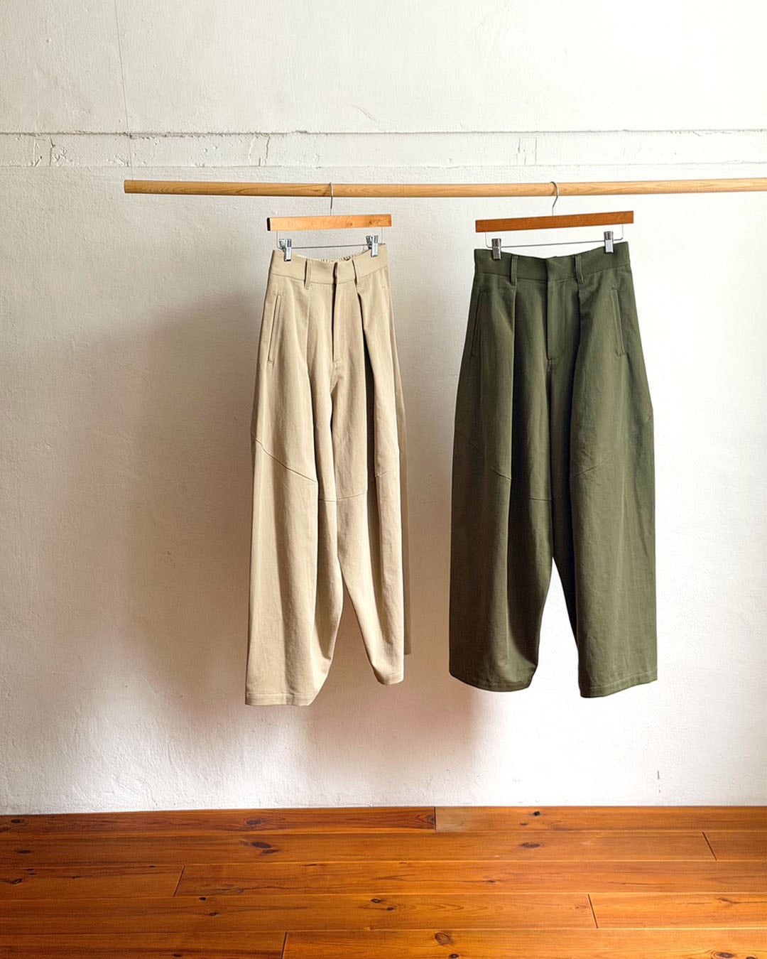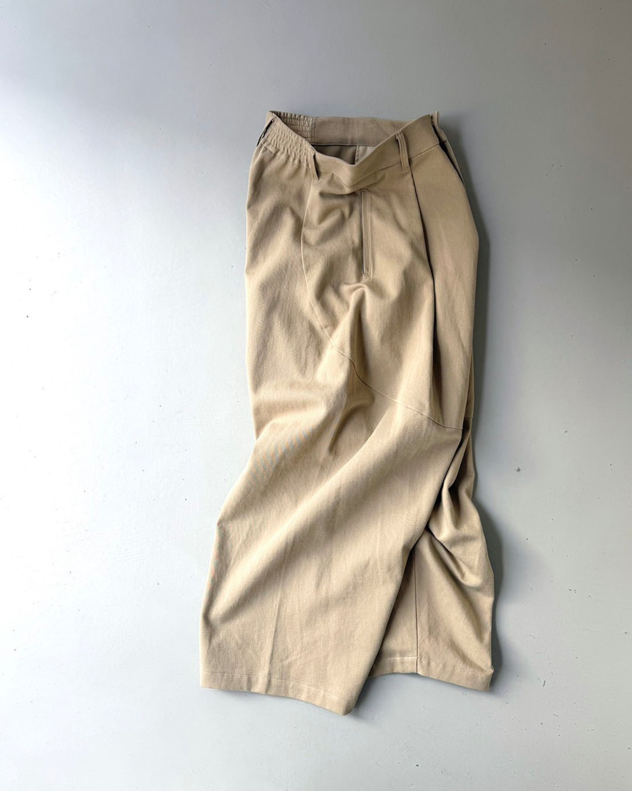 腰まわりのタックがほどよい奥行きを与え、リラックス感がありながらも、計算された立体美です。