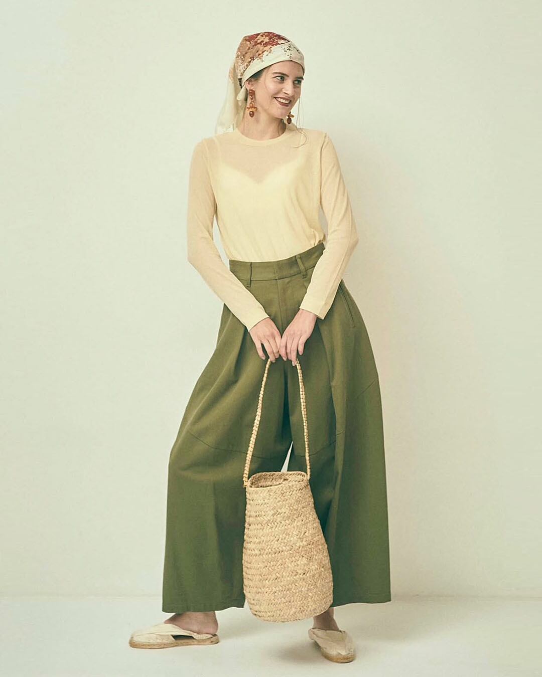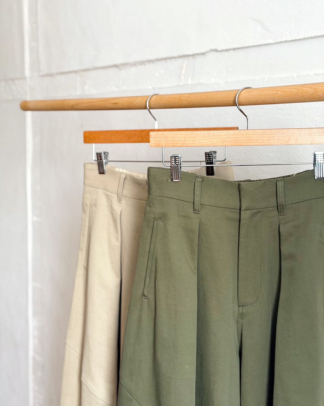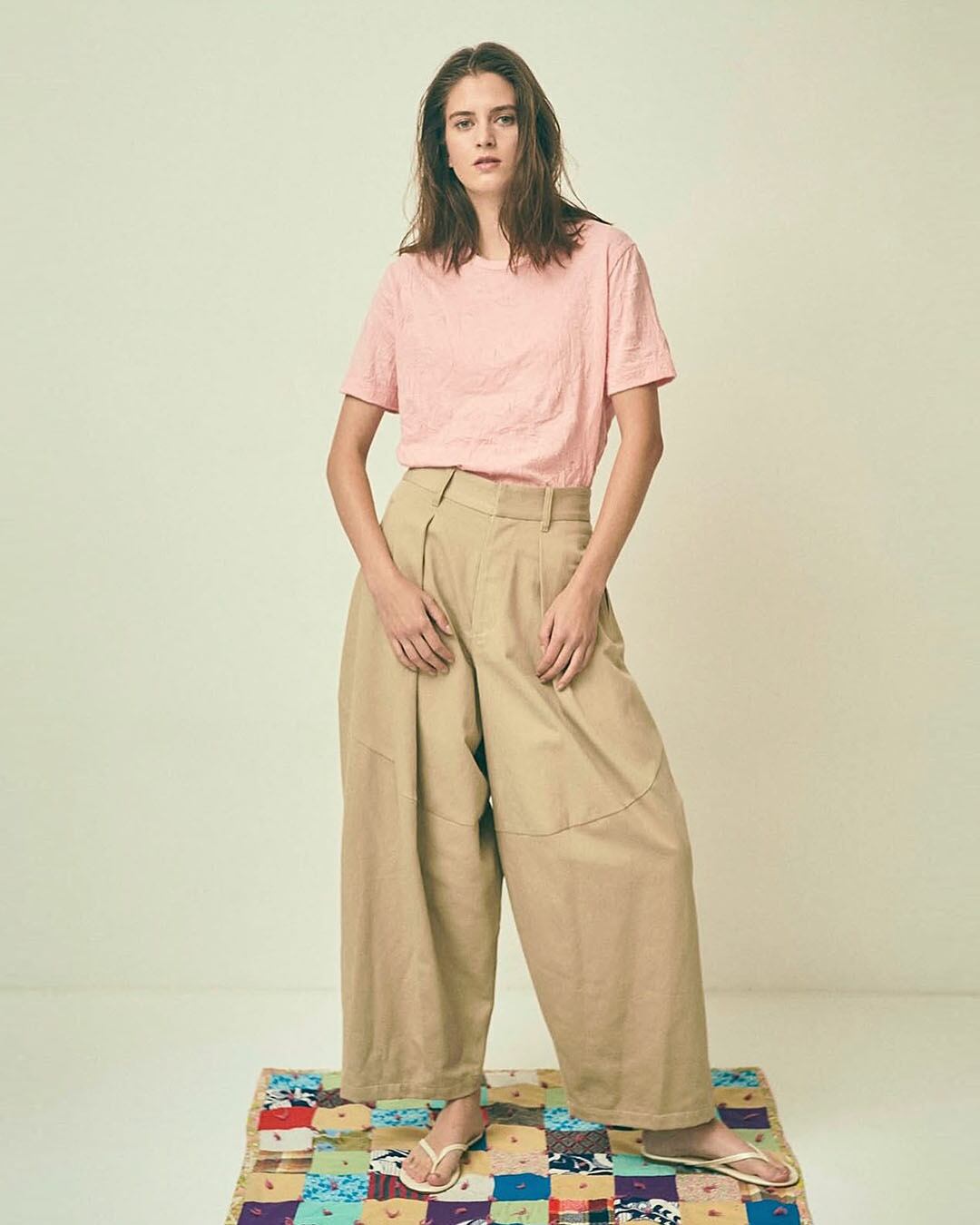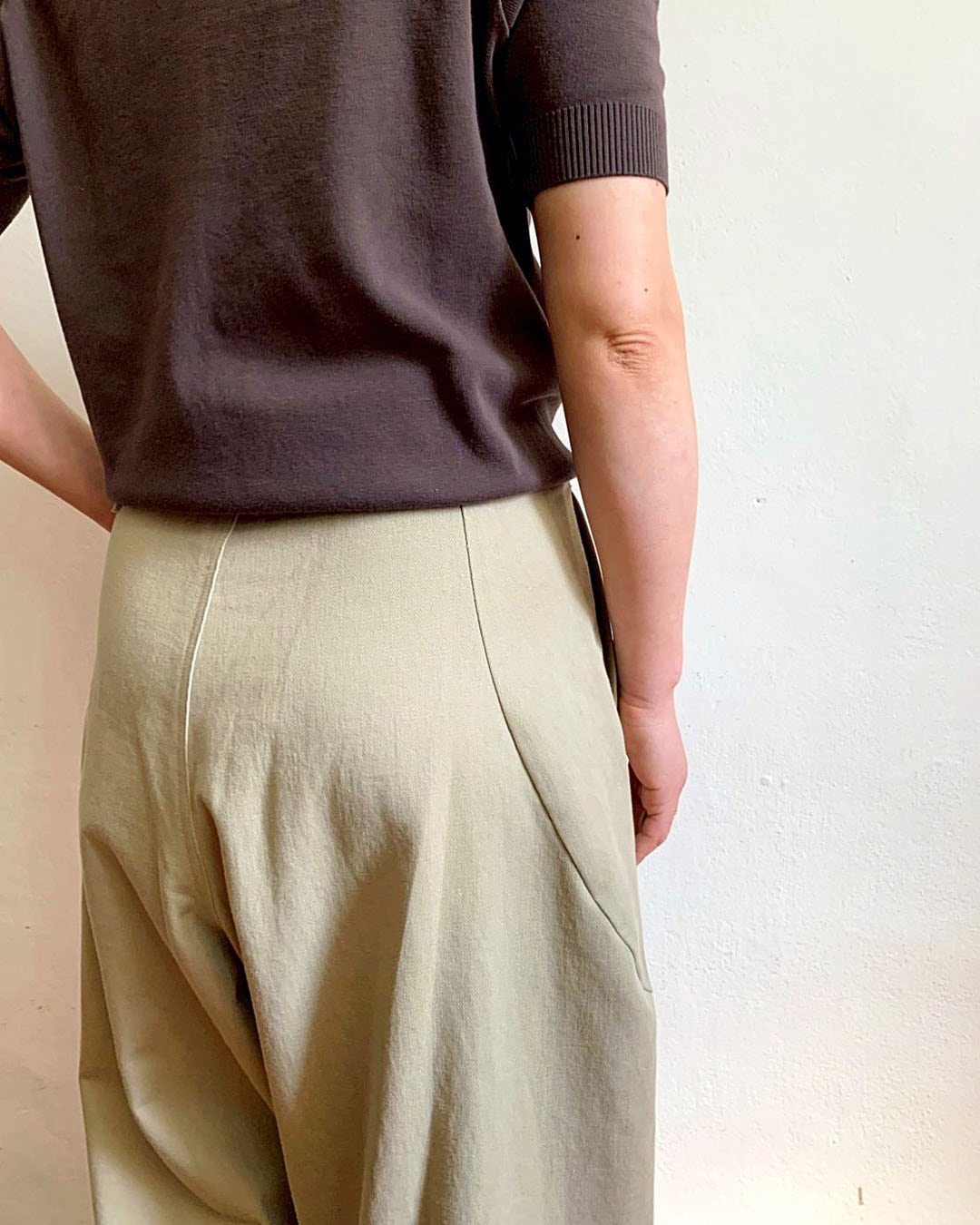 腰まわりのタックがほどよい奥行きを与え、リラックス感がありながらも、計算された立体美です。