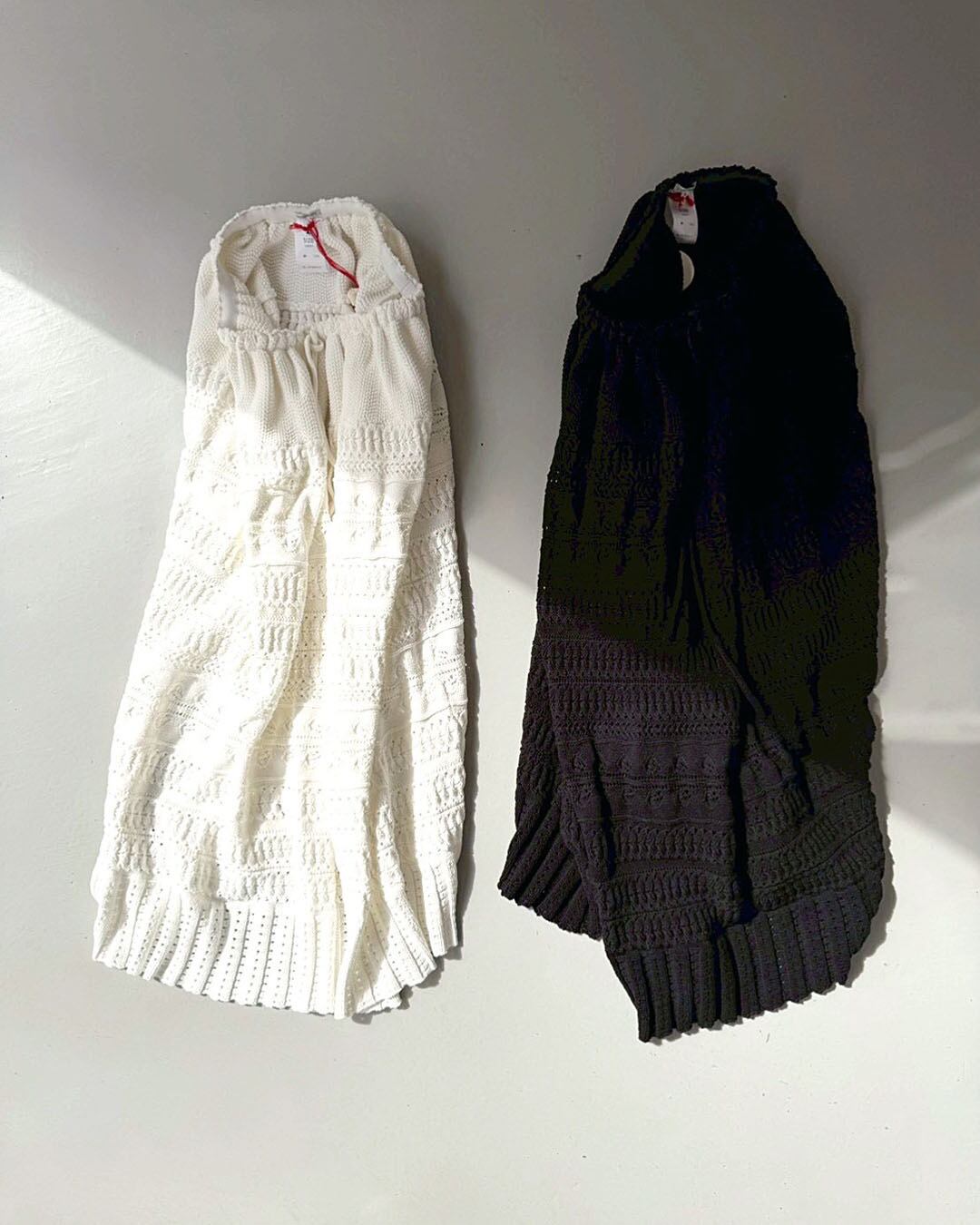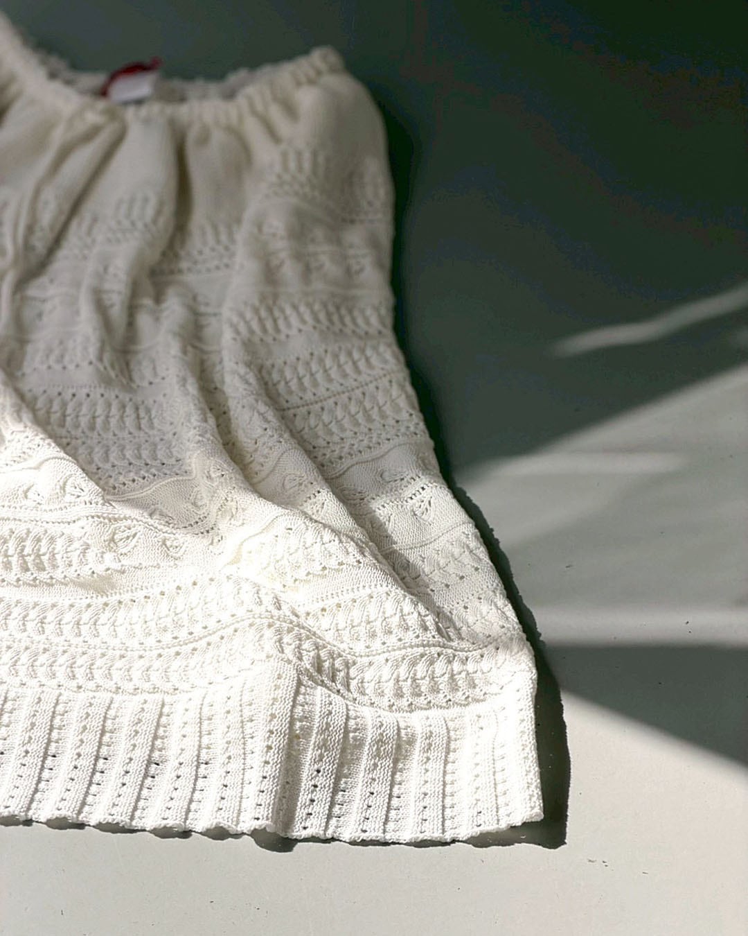 1900年代初頭のフランスのアンティークの編み模様にインスパイアされた、クロシェスタイルの一着。