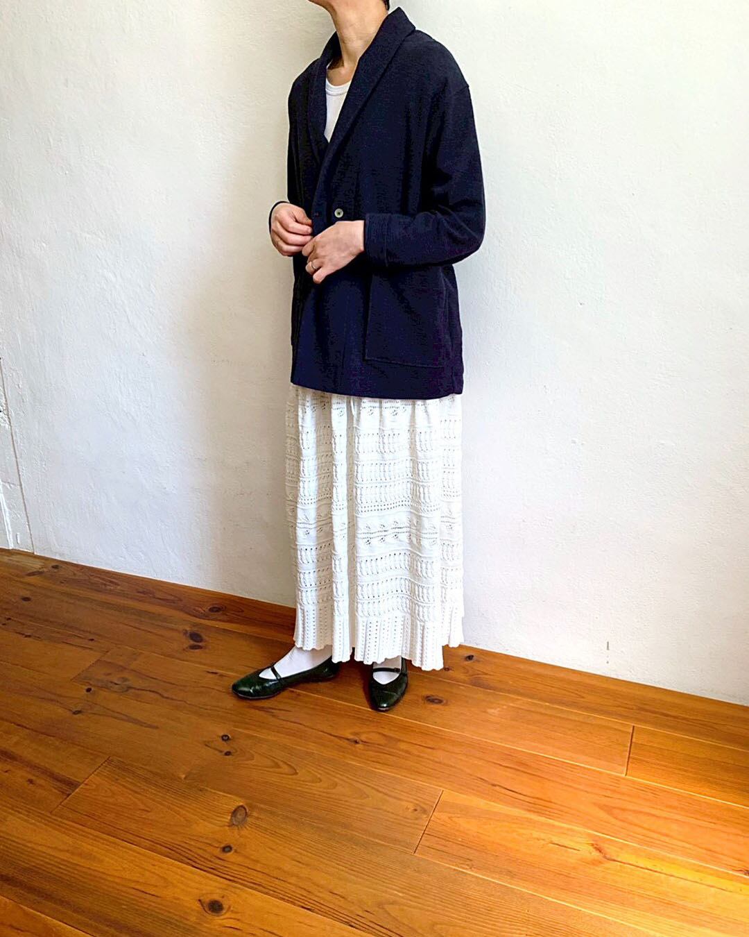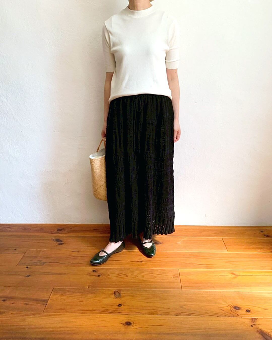 しっかりと編み立てられた生地はほどよい重みがあり、落ち感のあるシルエットに。