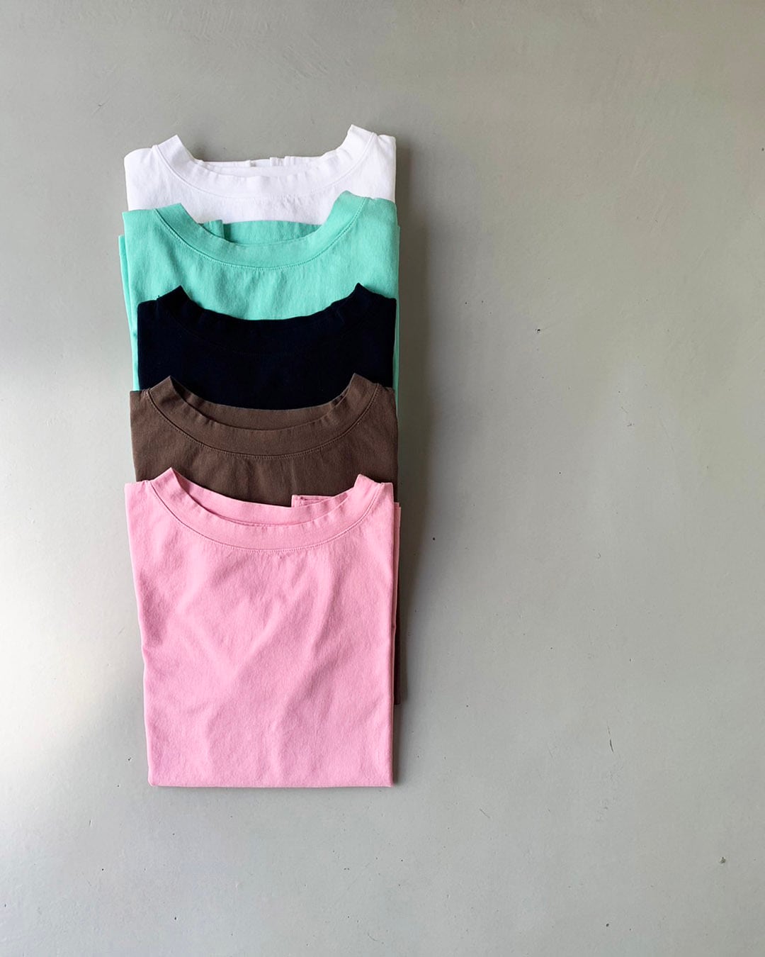何度洗ってもヨレにくいタフさと、少し立ち上がるような襟が女性らしさをひきたてる、2つの魅力がキュッと詰まった定番Tシャツです。