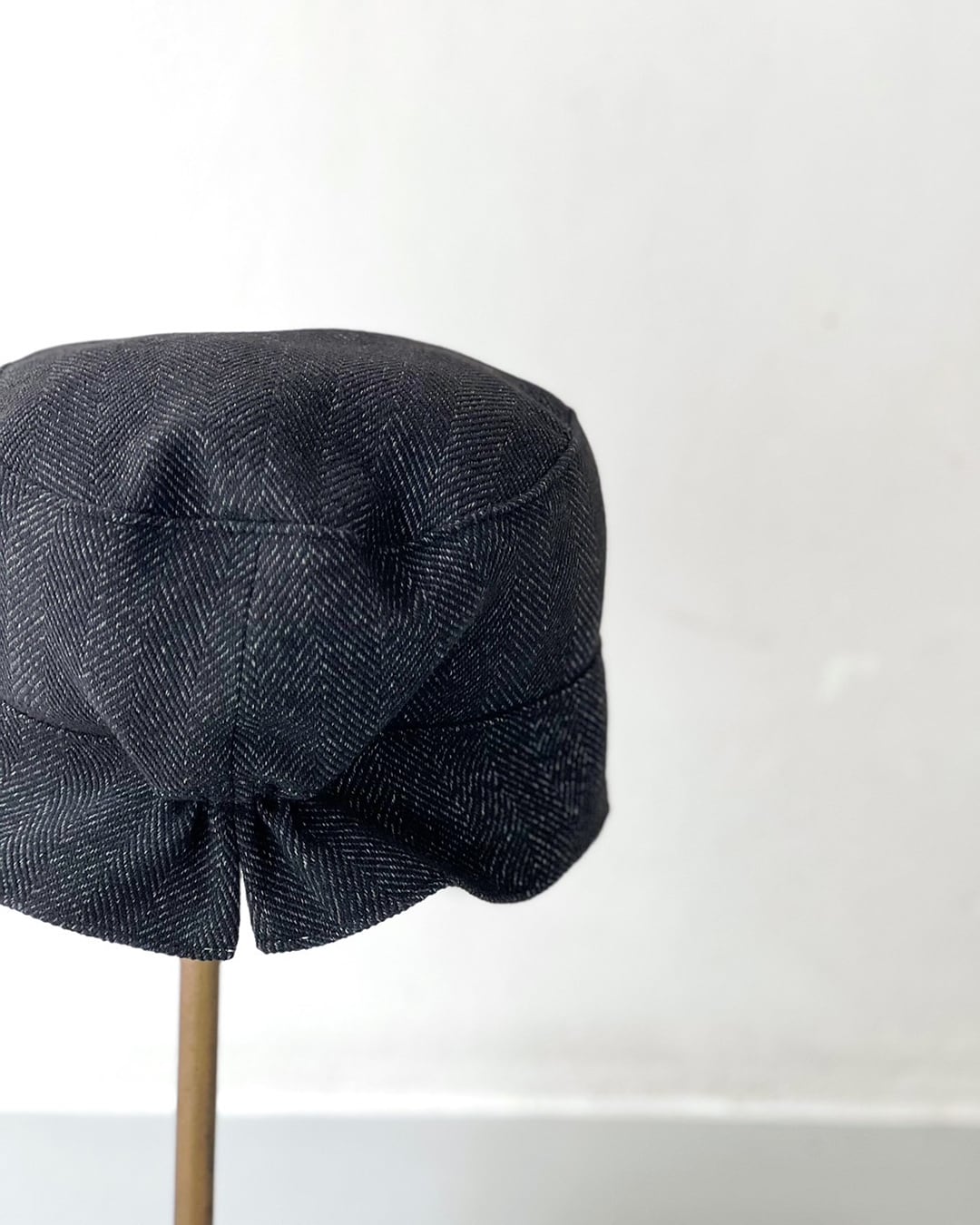 少し大きめのサイズで被り口はゆったり、前後の高さにグラデーションがつけられる事で自然と頭に馴染みます。