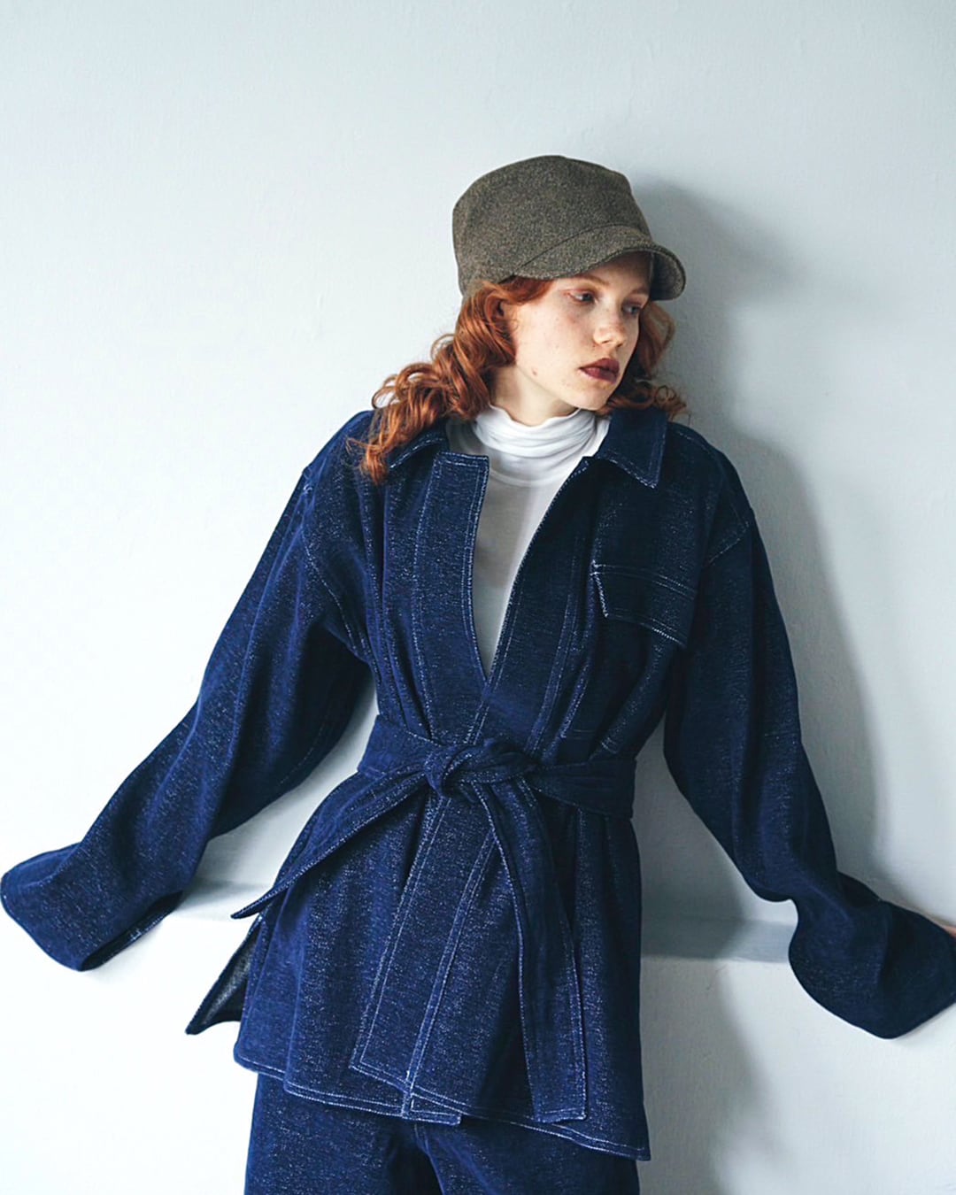 ヘリンボーン生地が大人っぽく、秋冬のデイリーに合わせやすい一品です。