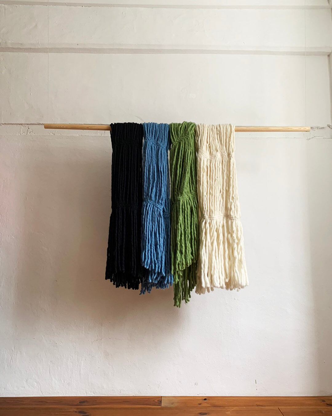 長いフリンジが特徴のウールストール。