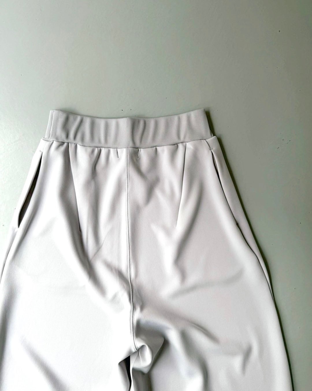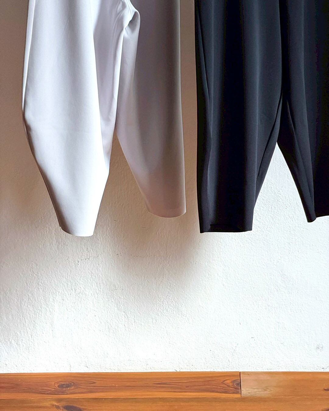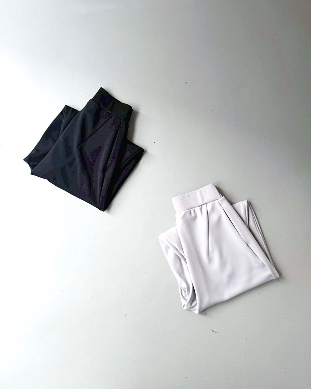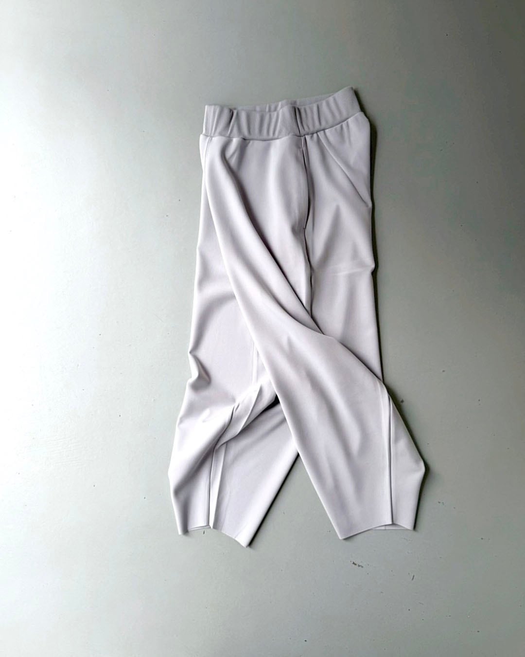 ジャージーの快適さをベースにしながら、コーディネートをまとめる名作パンツです。