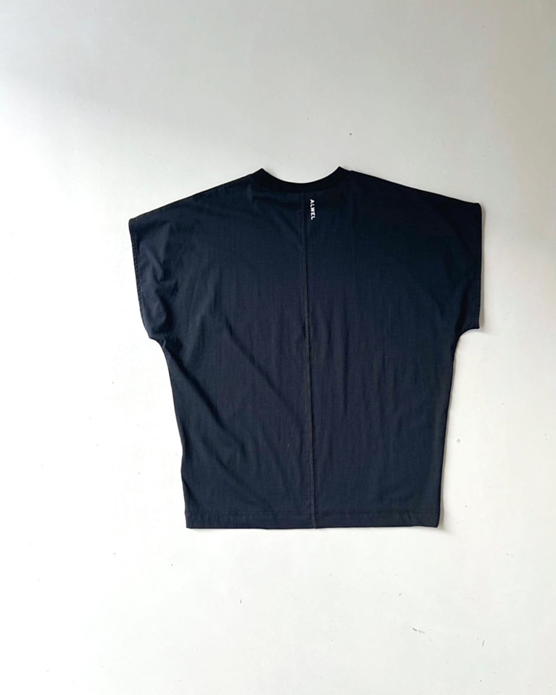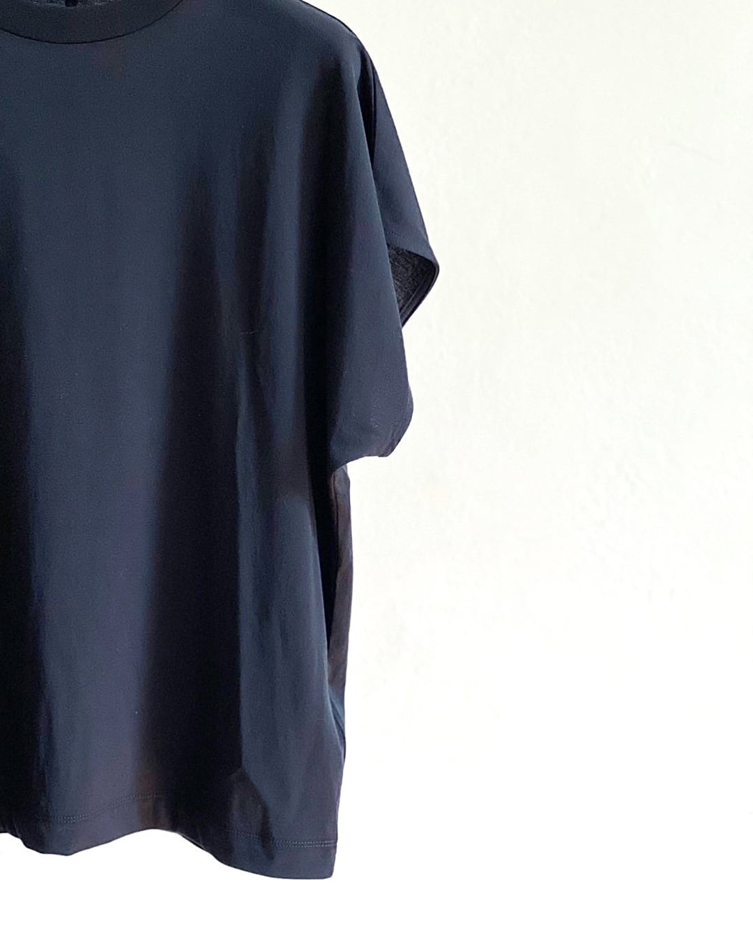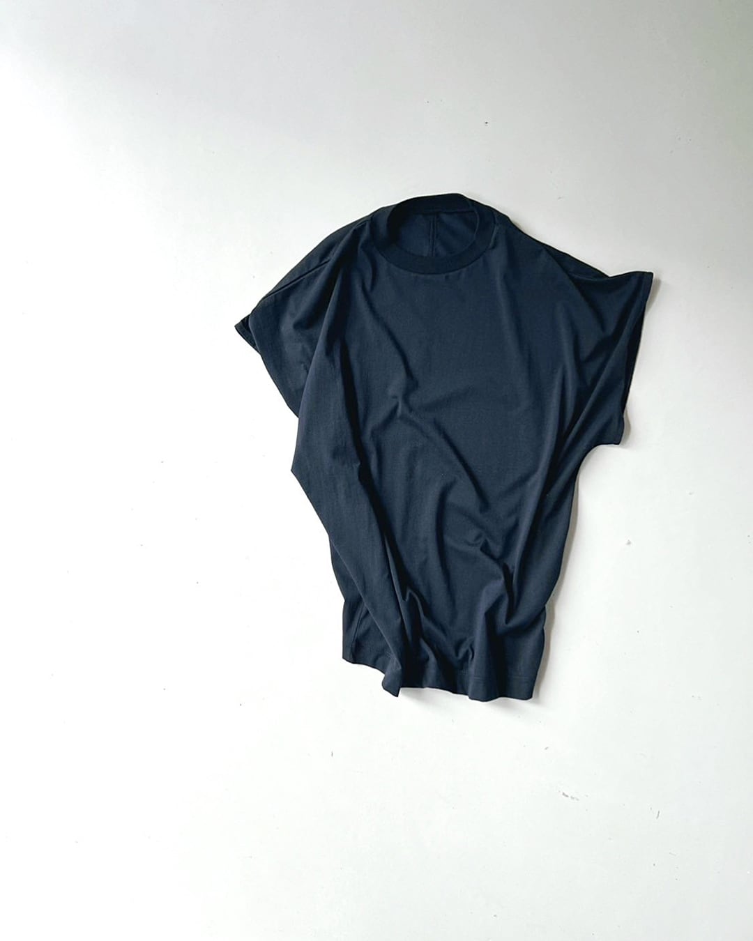 シンプルでありながらどこか雰囲気があり、つい手に取りたくなる一着。体のラインを拾いにくいオチ感のある生地の為、さらりと一枚で、またジャケットやカーディガンのインナーとして重宝します。