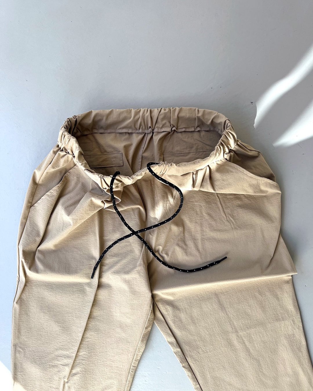 縦横だけでなく斜めにもストレッチが効いた快適な履き心地。ウエストはゴムとドローコードで調節可能です。