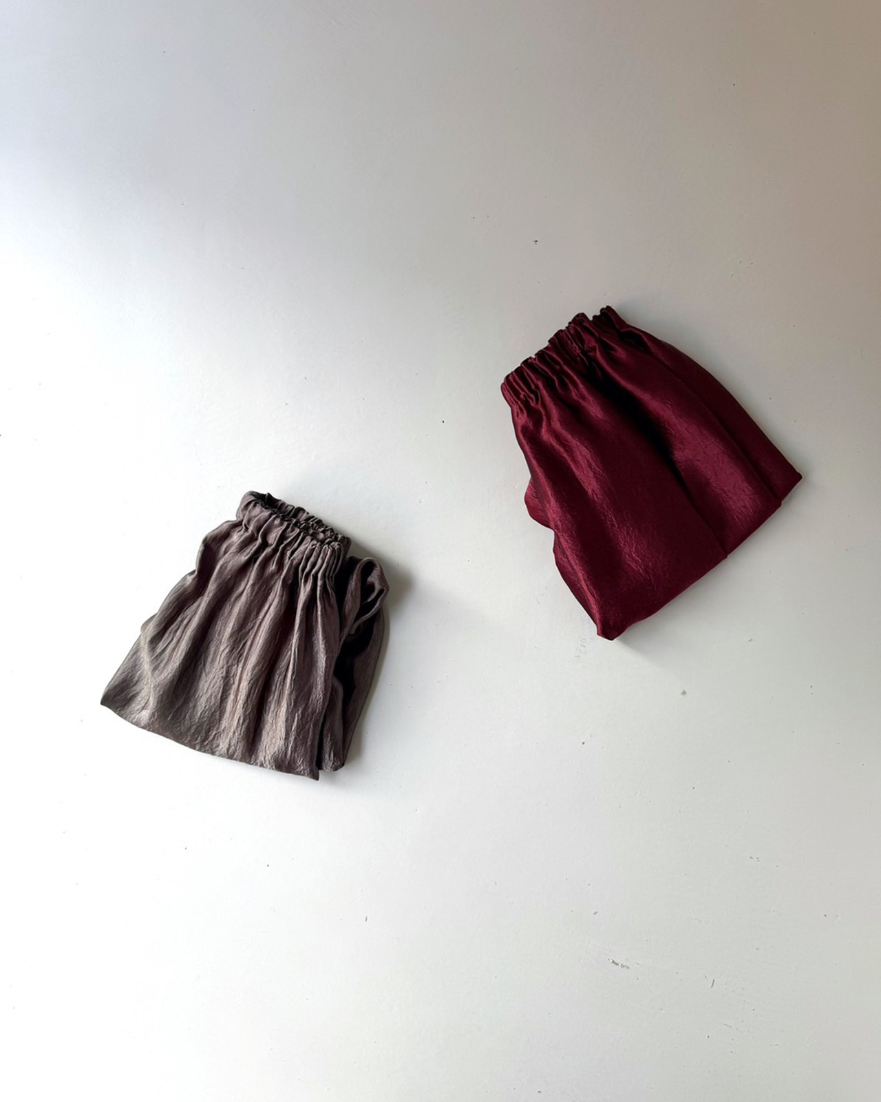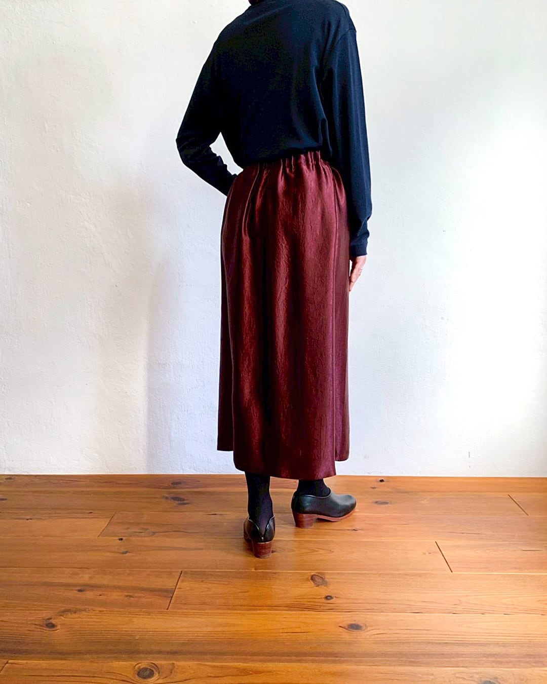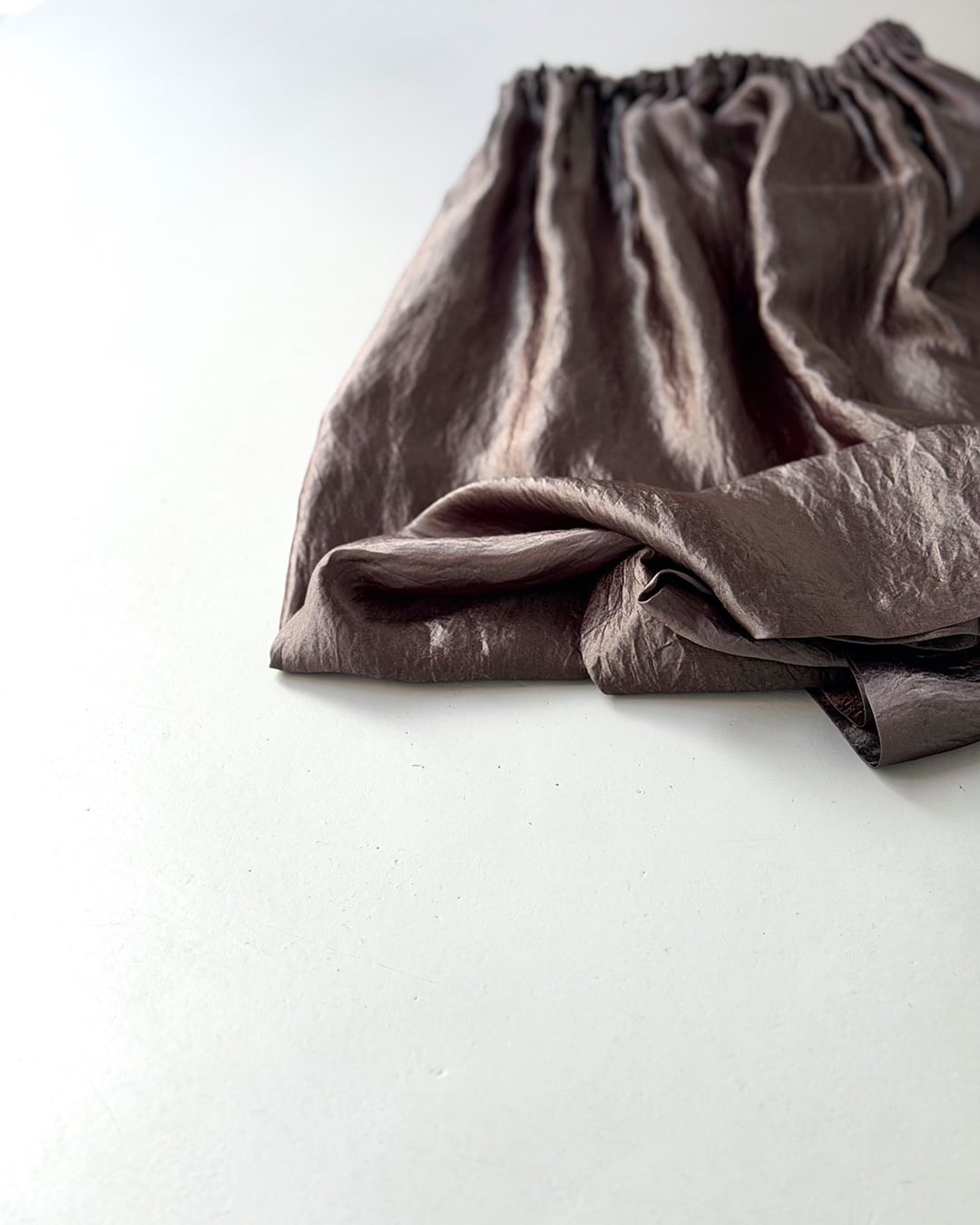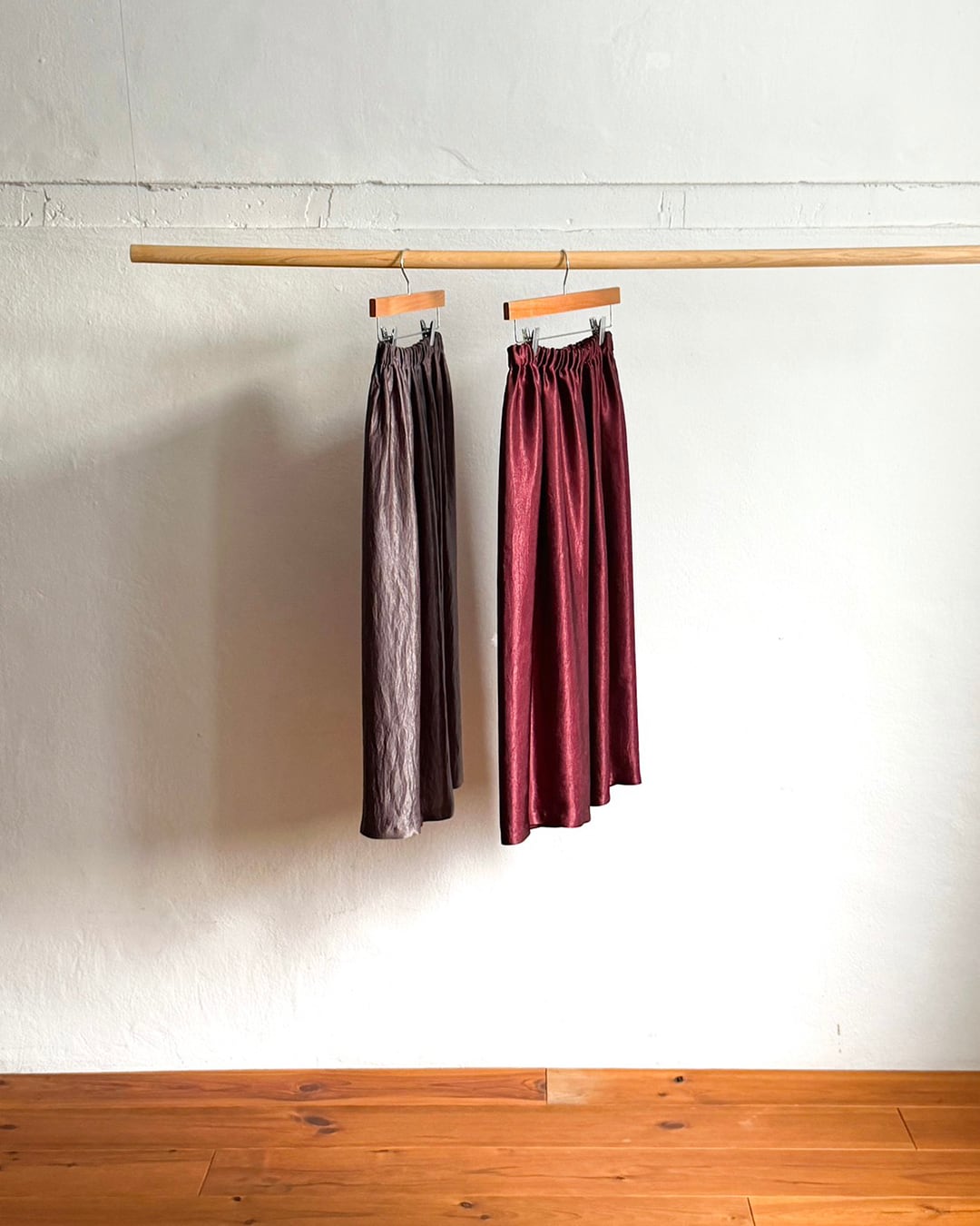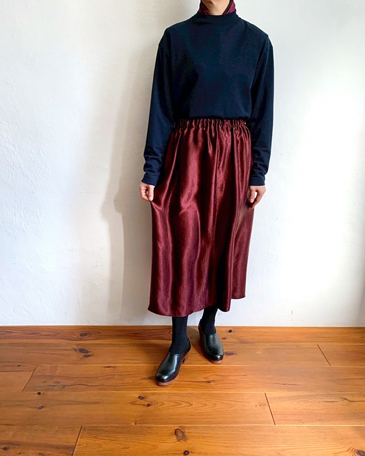 ※光沢のある生地の特性上、撮影環境や光の加減によって色味が異なって見えています。スタッフ着用のOliveは実物よりブラウンがかった画像となっております。ご不明点はお気軽にお問い合わせください。
